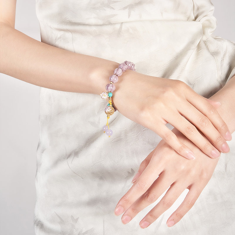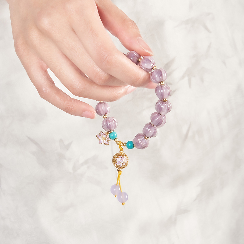大英博物馆东方梦境系列荷花好运莲莲紫手链送女生手链生日礼物