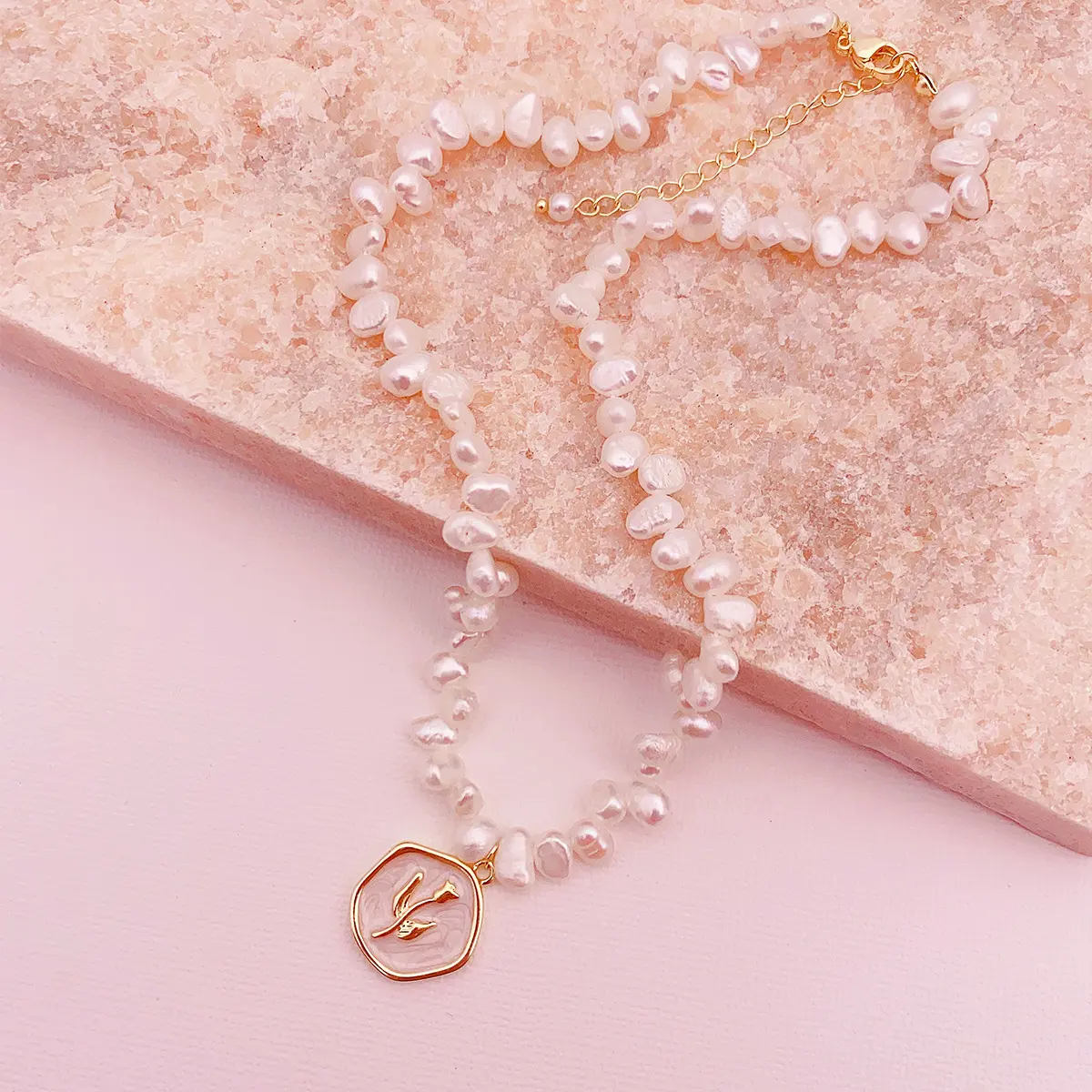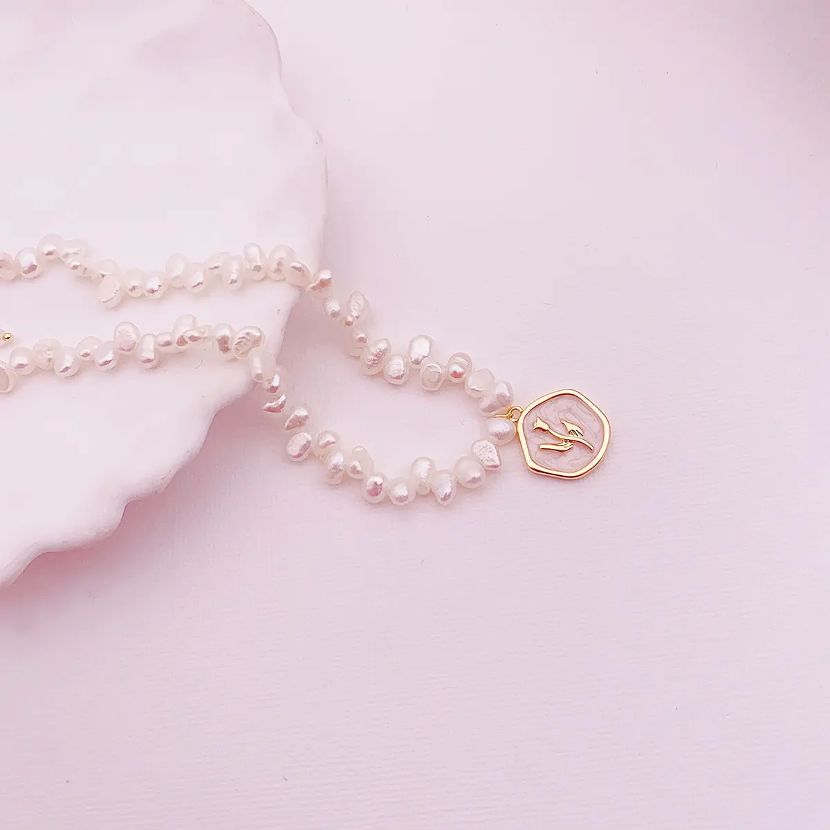 淡水珍珠项链女 法式复古花朵气质巴珍珠颈链锁骨链电镀花卉白色