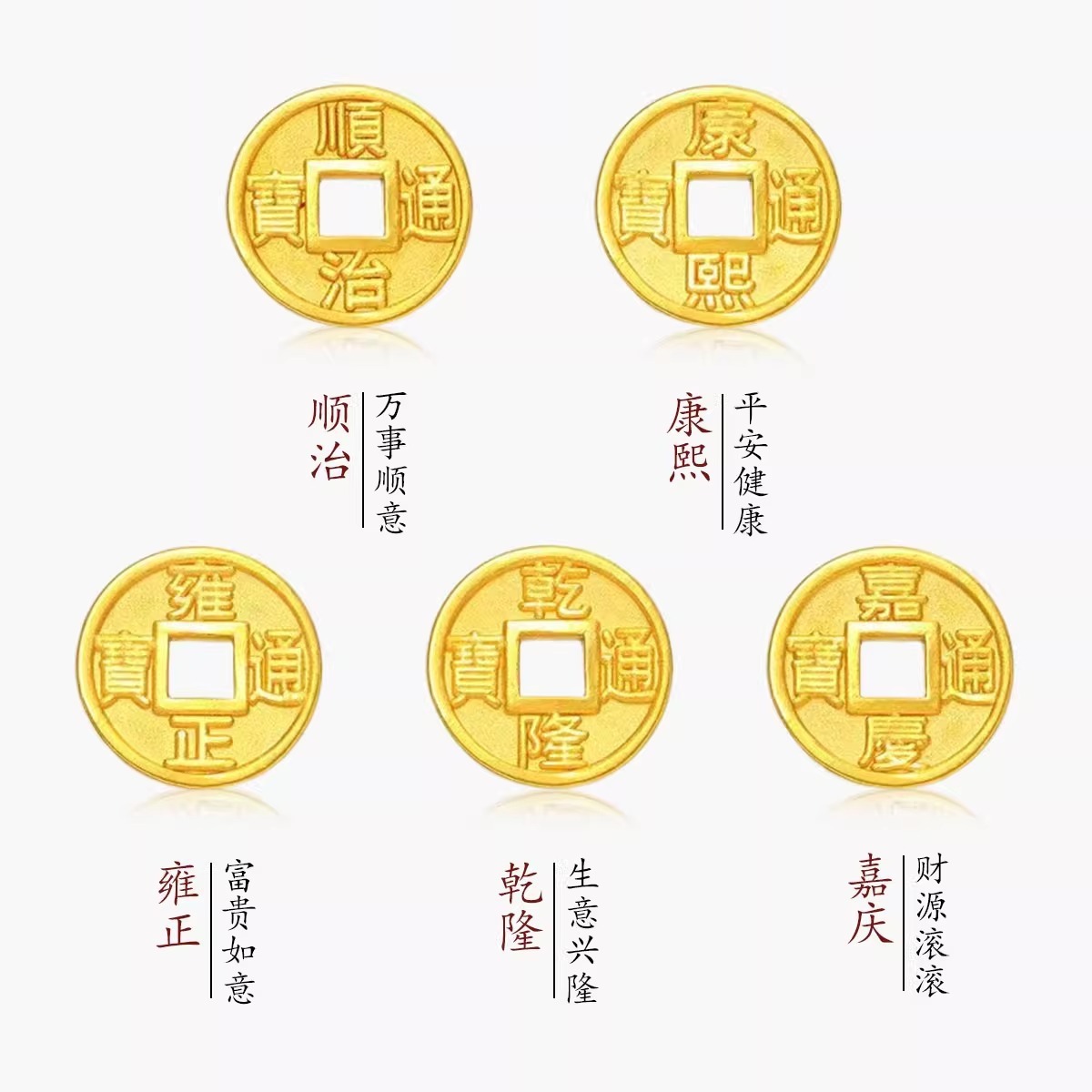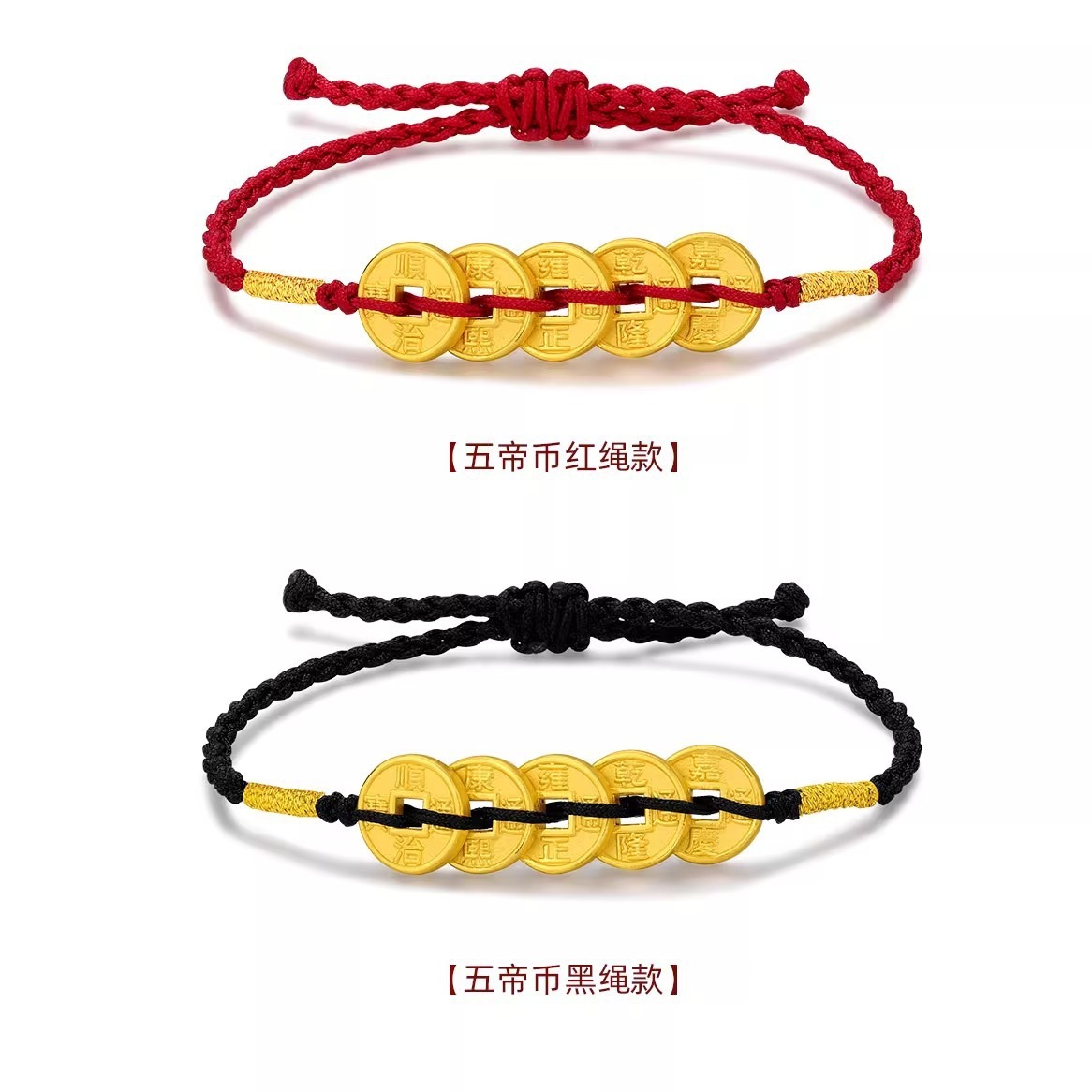 黄金五帝币999足金包银五帝钱本命年红绳手链钱币手绳X男女款礼物