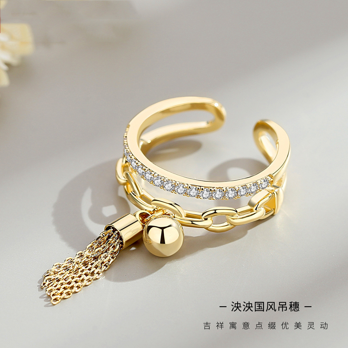 Young臻荣中国风纱球吊穗开口戒指女小众简约ins关节戒子指环饰品