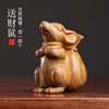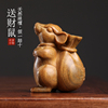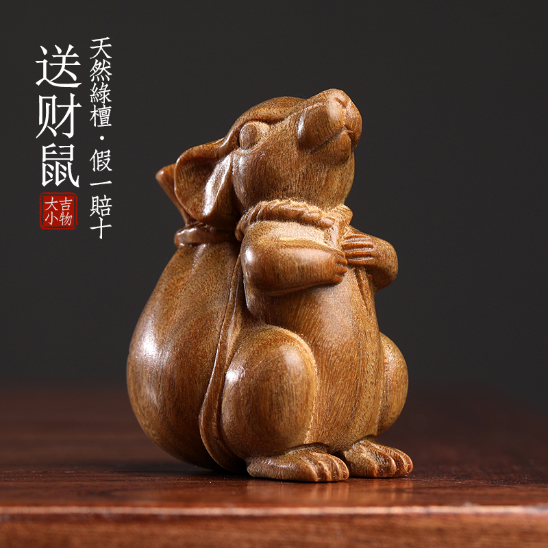 天然绿檀木雕生肖鼠送财鼠文玩手把件代代数钱创意桌面工艺品摆件