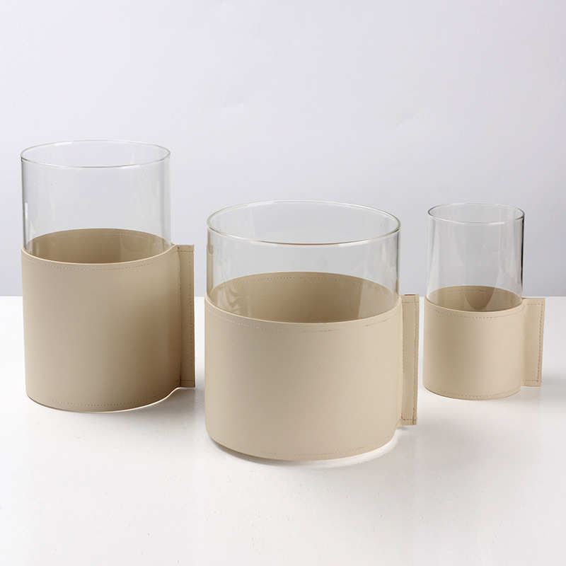 现代轻奢花瓶玻璃皮革艺术花器摆件餐厅酒店样板房软装圆形装饰品