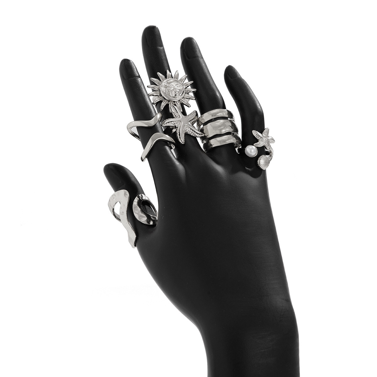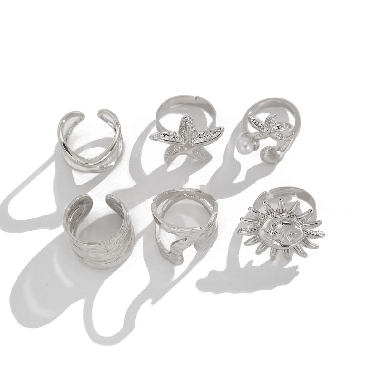 6件套海星人脸太阳戒指套装 欧美新潮嘻哈时尚个性小众设计感指环