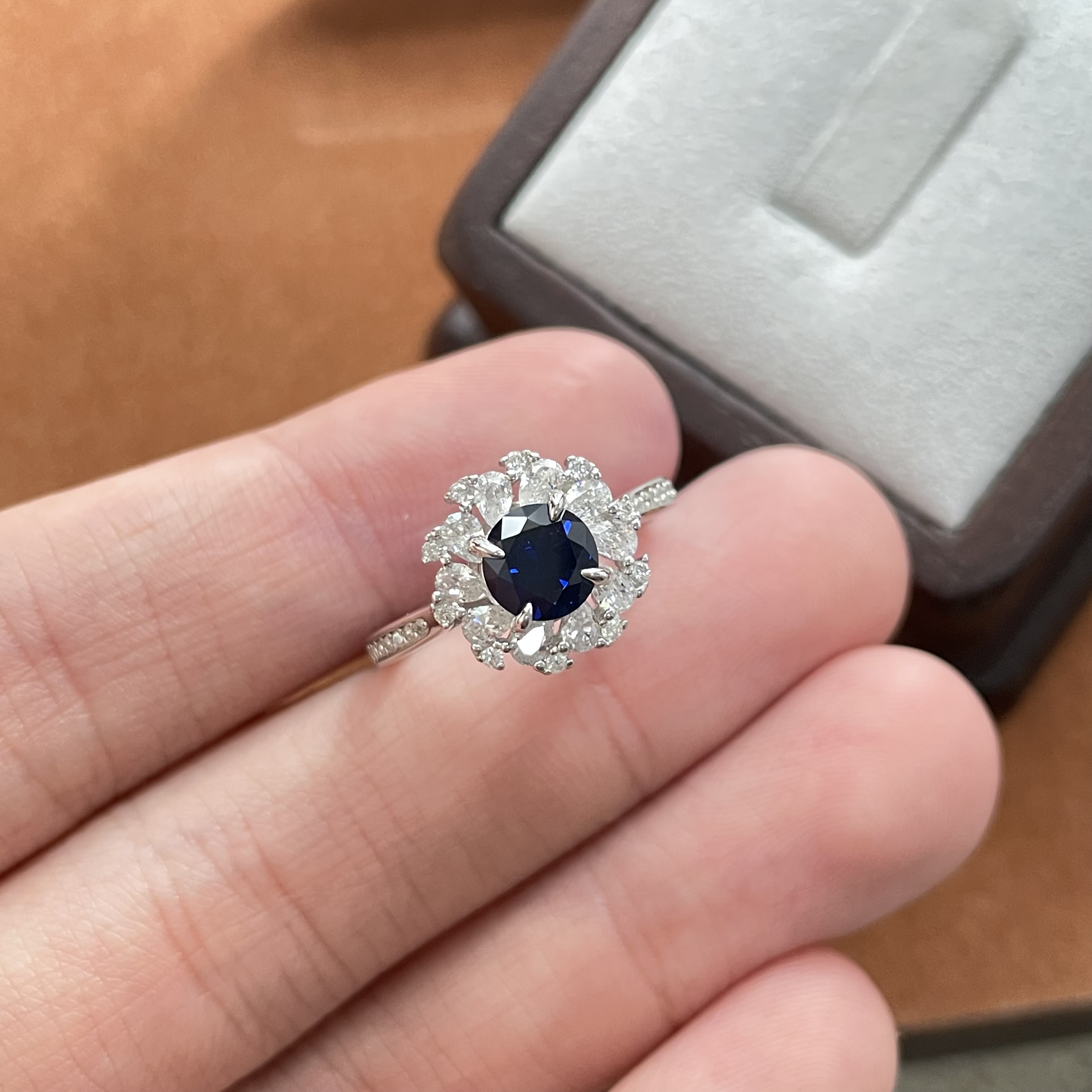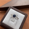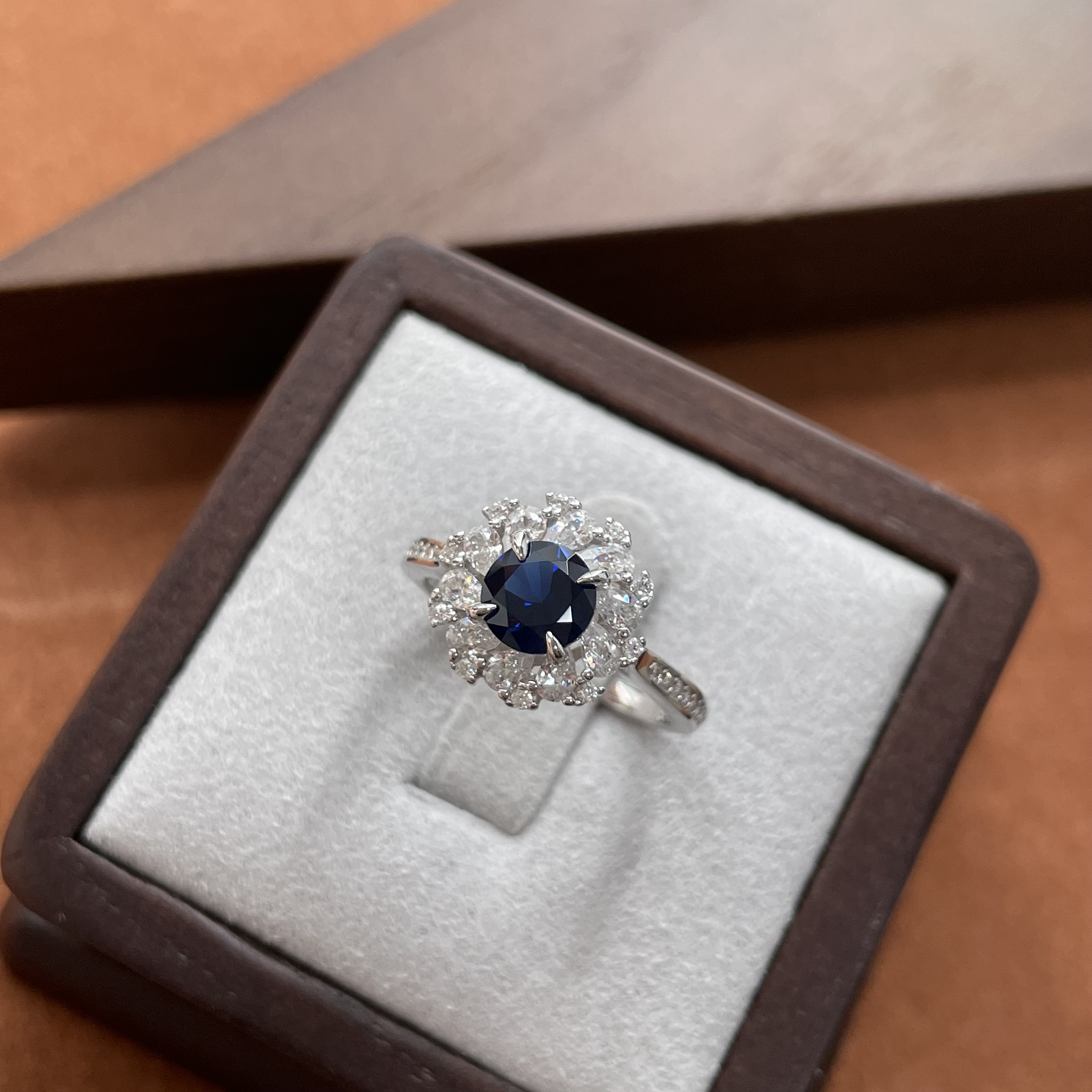 太阳花1克拉纯银925戒指镶嵌进口高碳钻皇家蓝宝石简约高级感钻戒