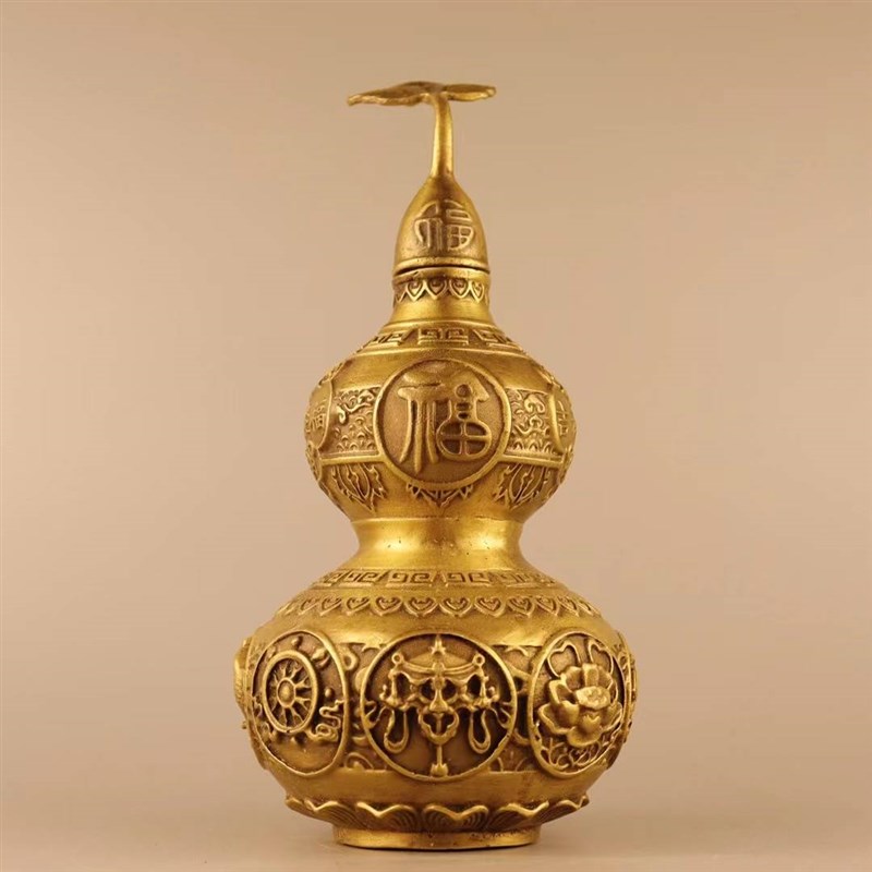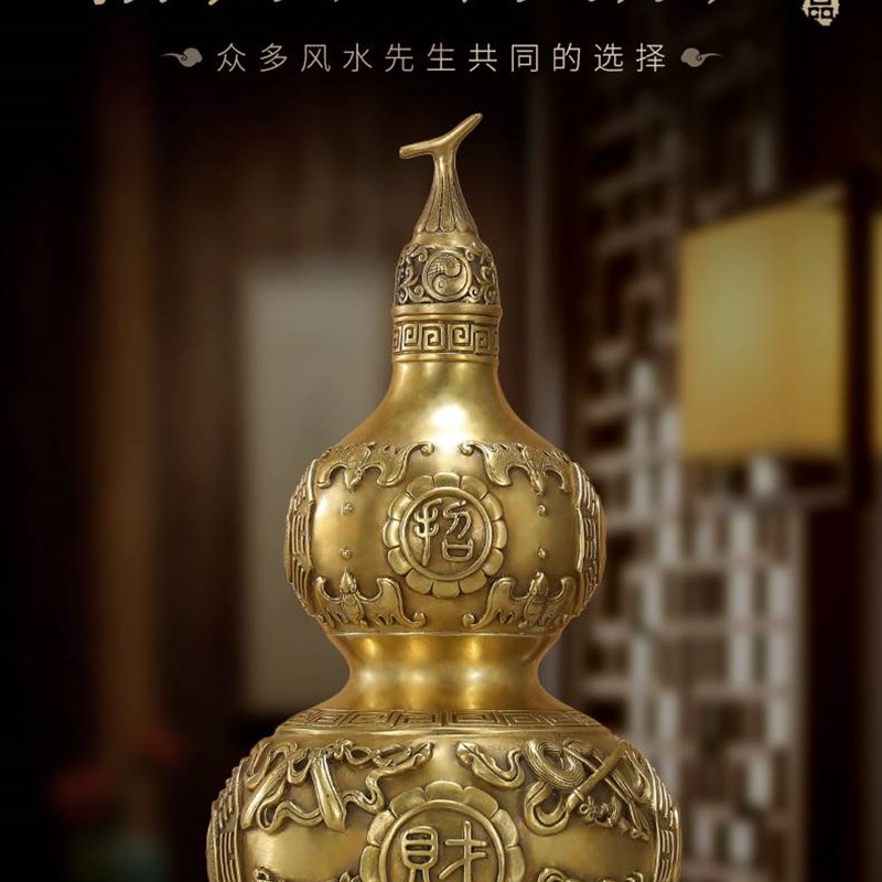 纯铜特大号五福葫芦居家客厅办公室桌面玄关店铺开X业摆件工艺品