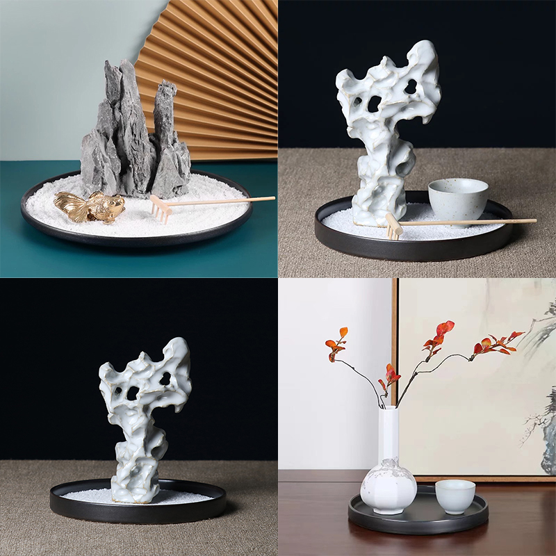 新中式摆件搭配套装茶具托盘组合软装饰品家居样板房间茶几室书房