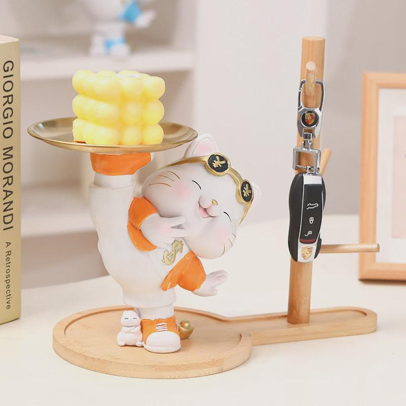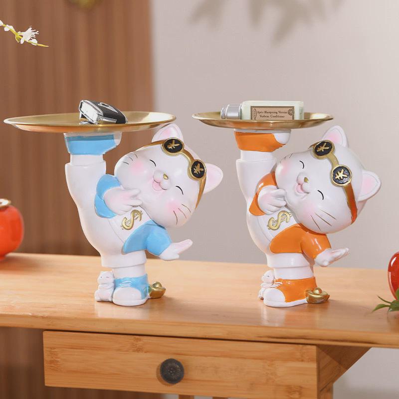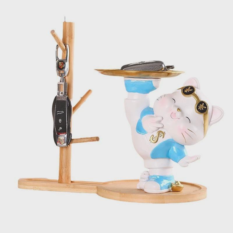 招财猫玄关钥匙收纳托盘摆件家居客厅入户玄关搬家乔迁新居装饰品