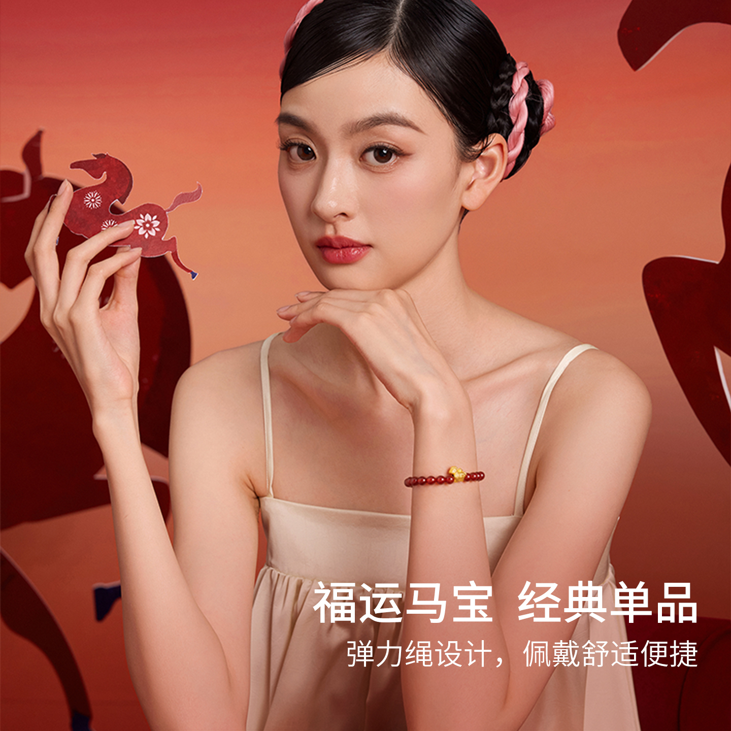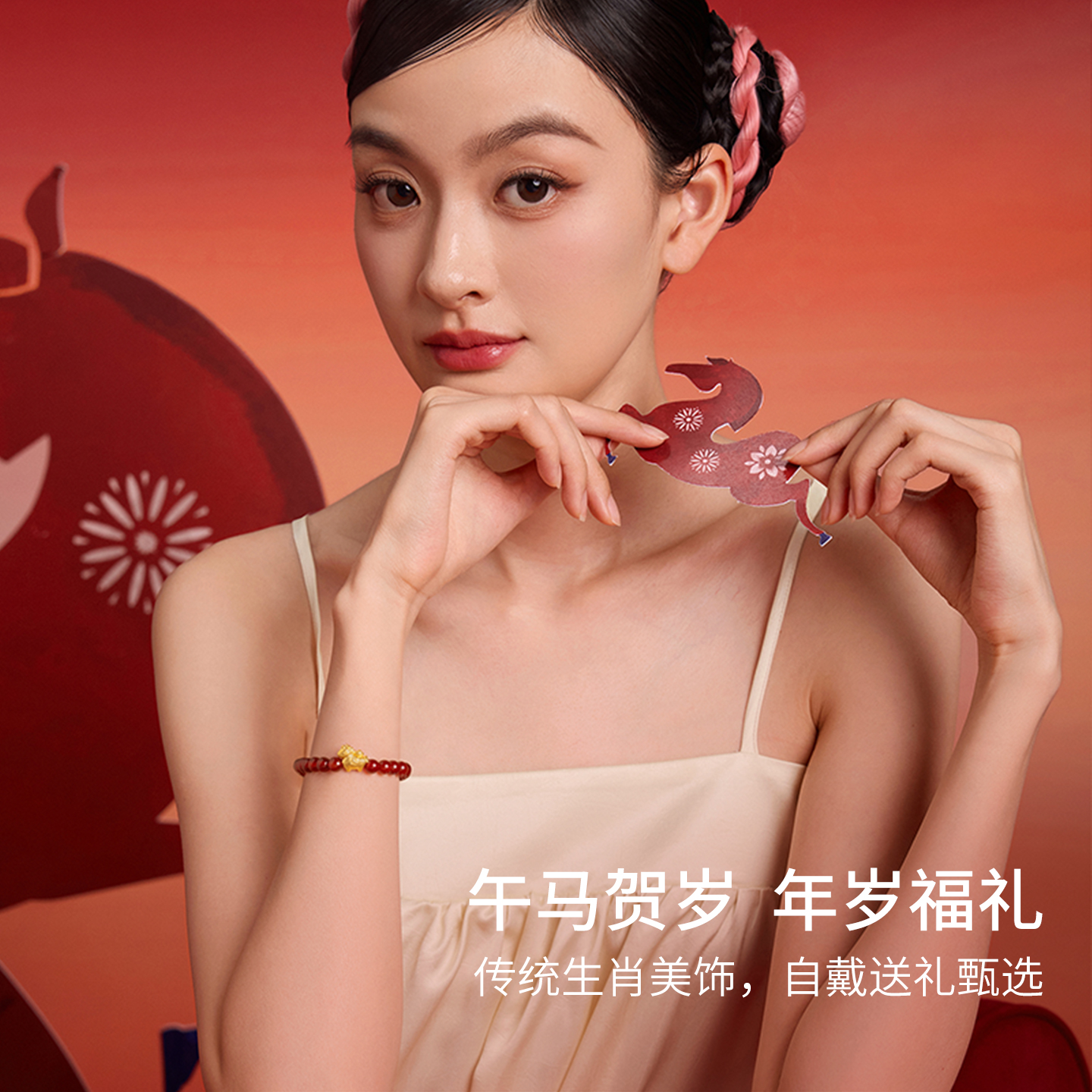 周六福黄金5d硬金手串女款添宝马生肖马系列定价本命年送圣诞礼物