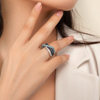 【圣诞礼物】APM MONACO藏青色&湖水蓝色交错长方形戒指小众设计