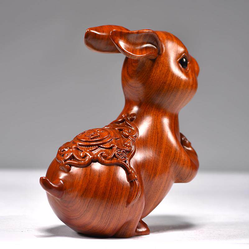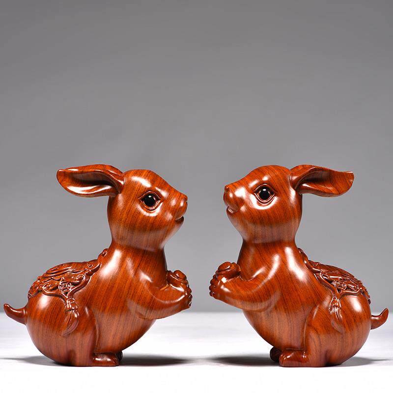 花梨木雕兔子摆件木兔十二生肖实木头兔工艺礼品摆饰家居客厅装饰