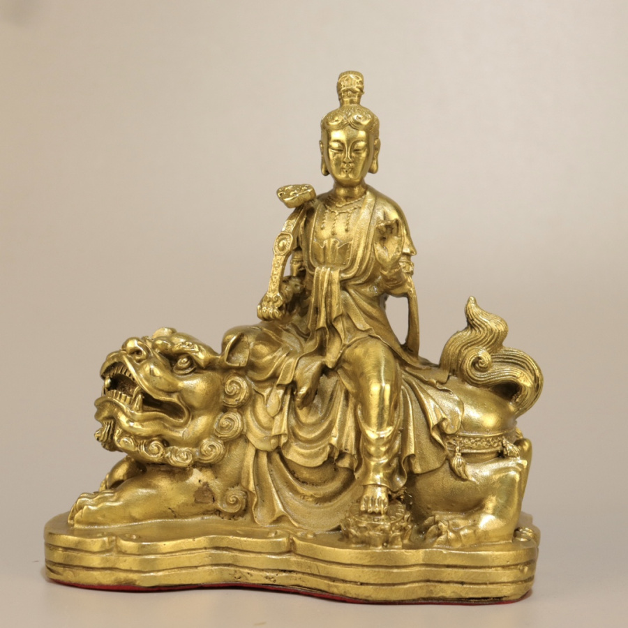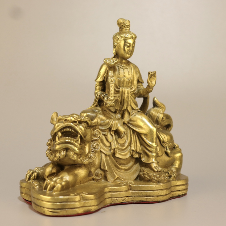 铜佛像摆件文殊菩萨普贤菩萨坐像一套家居佛堂桌面供奉中式工艺品