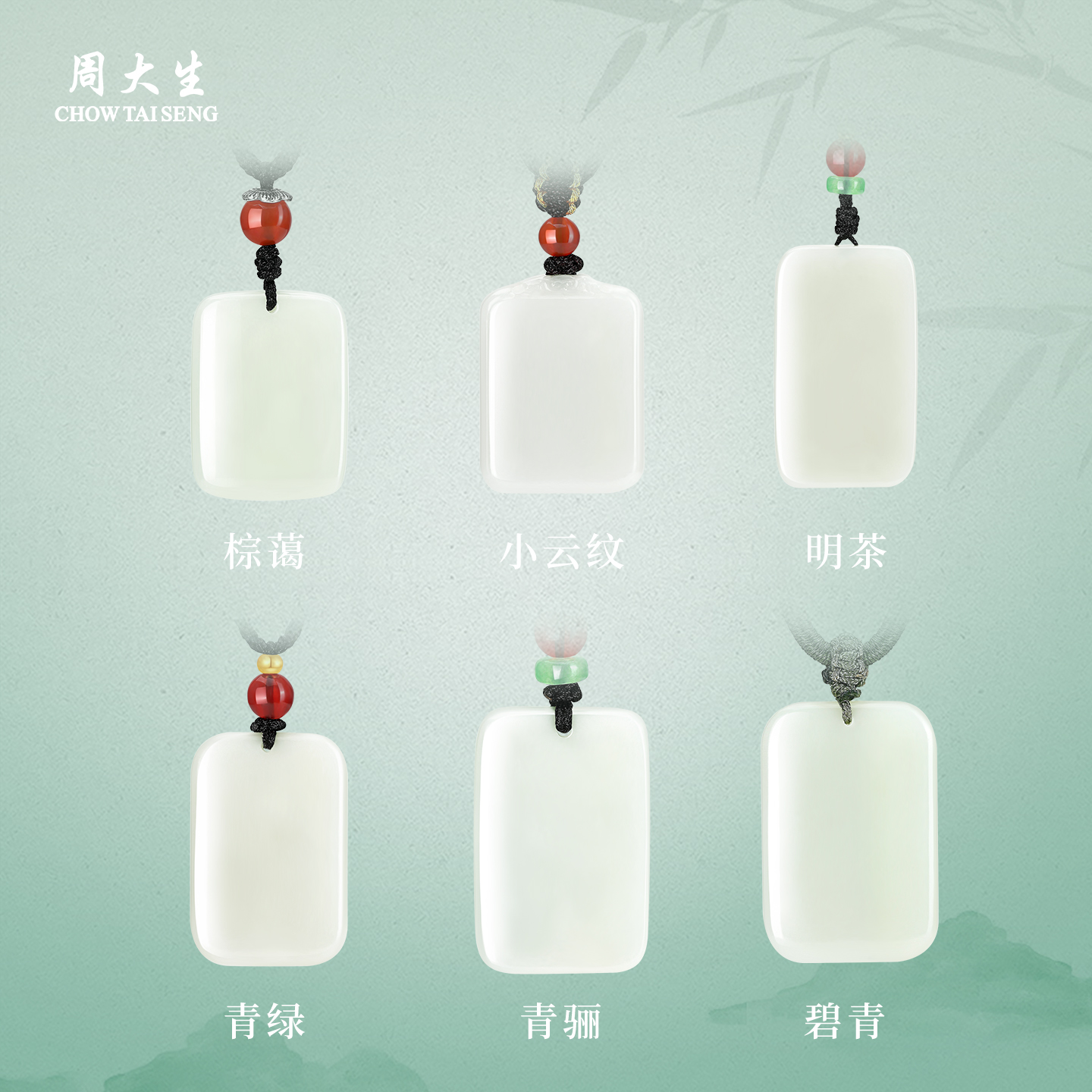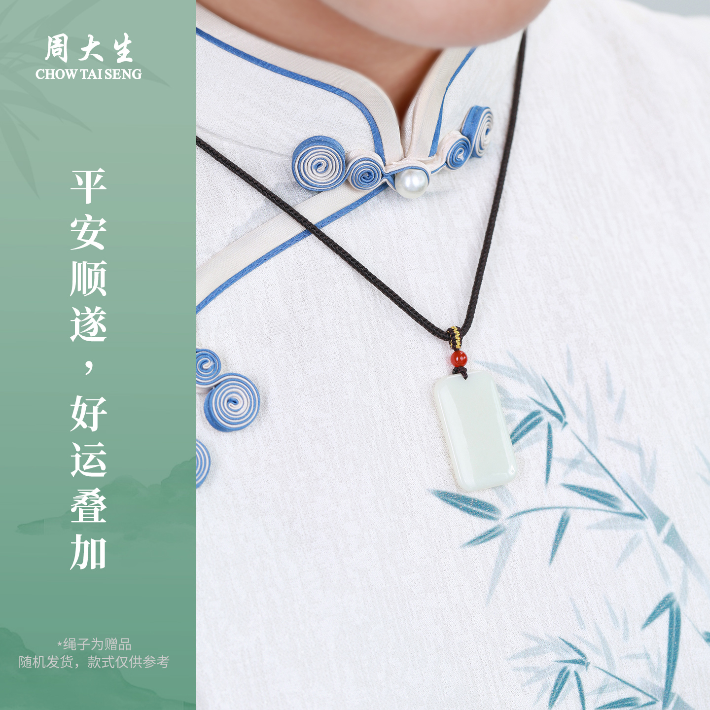周大生官方天然和田玉无事牌吊坠男女白玉玉石挂坠平安无事牌项链