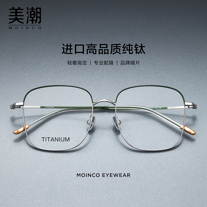 超轻纯钛大框近视眼镜架专业可配度数女款防蓝光辐射文艺复古镜框