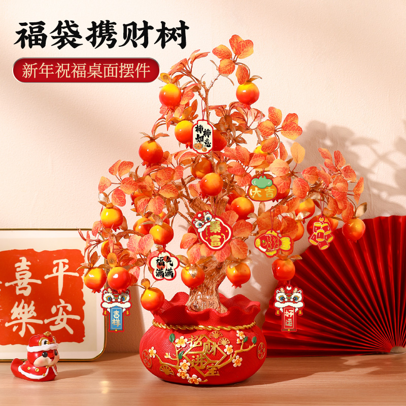 乔迁之喜新居布置装饰客厅发财树红果福桶摆件新年结婚搬家礼物