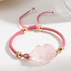 天然粉水晶手链雕刻九尾小狐狸手工编织手绳男女简约饰品情侣手串