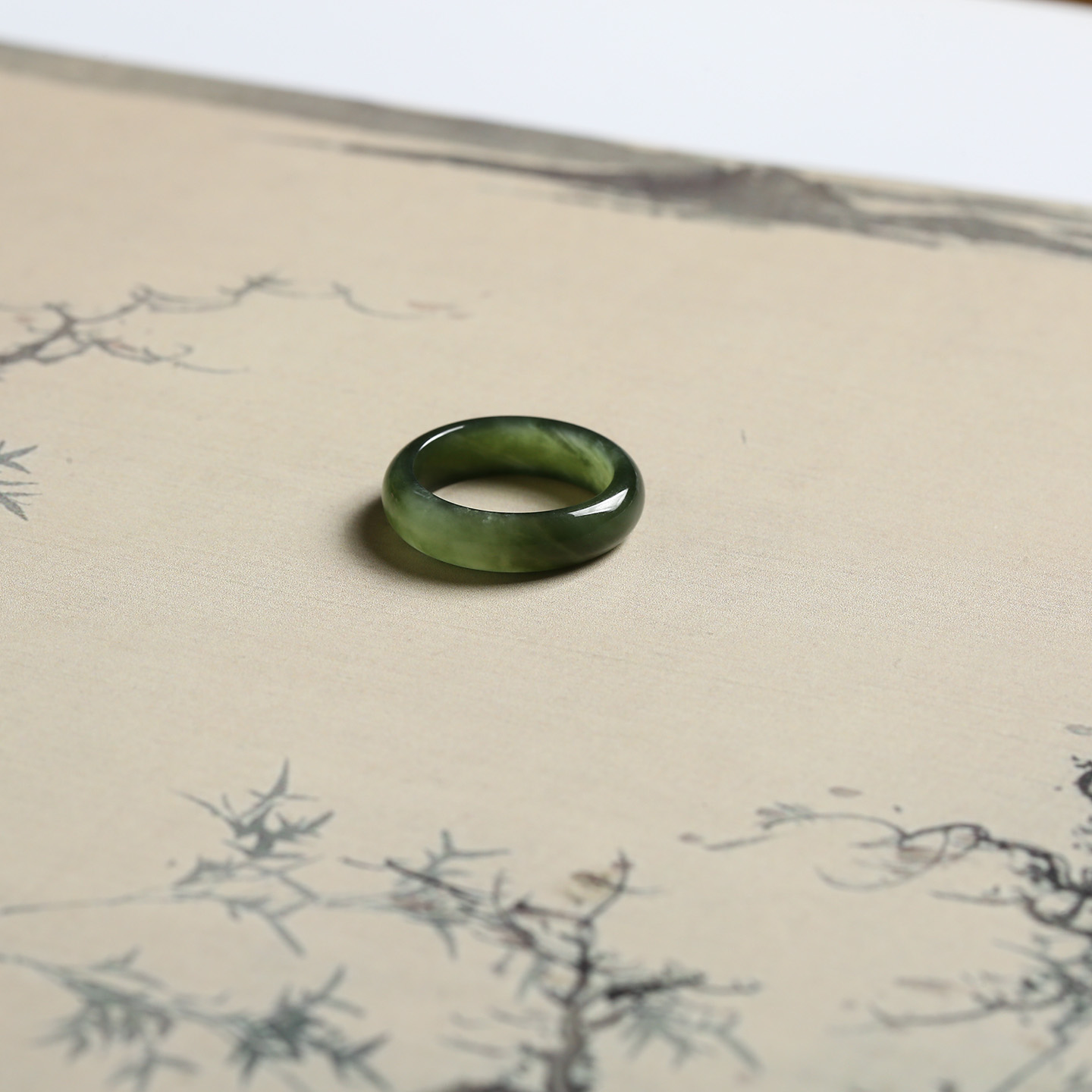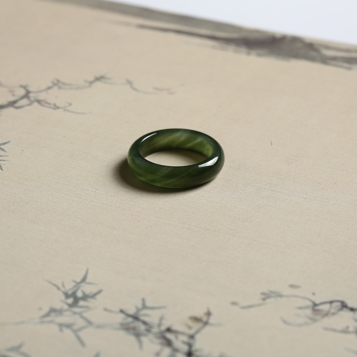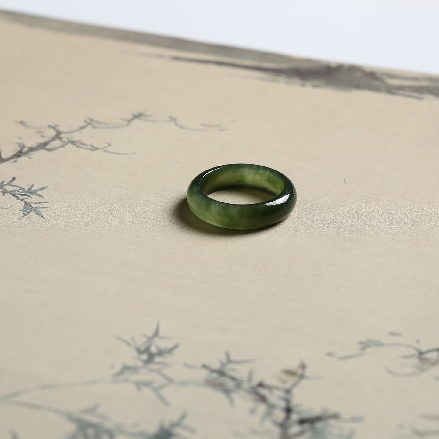7号戒指 和田玉青白小尺码圆弧素圈指环 1127
