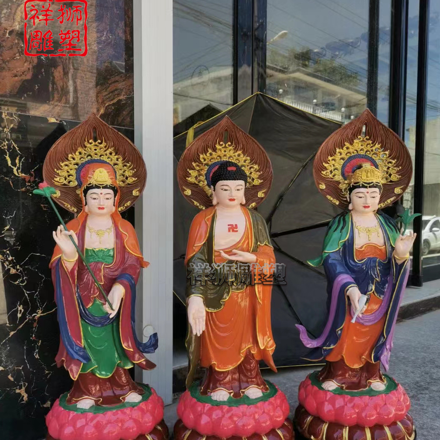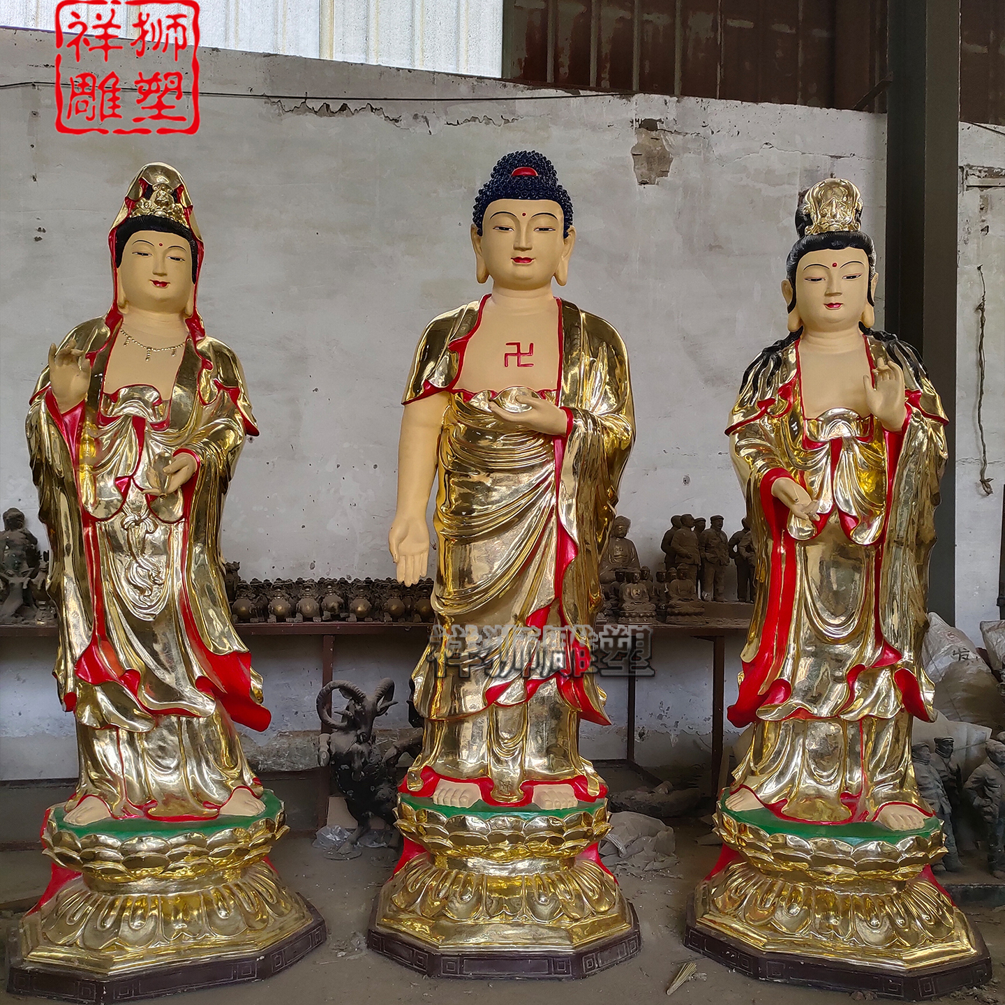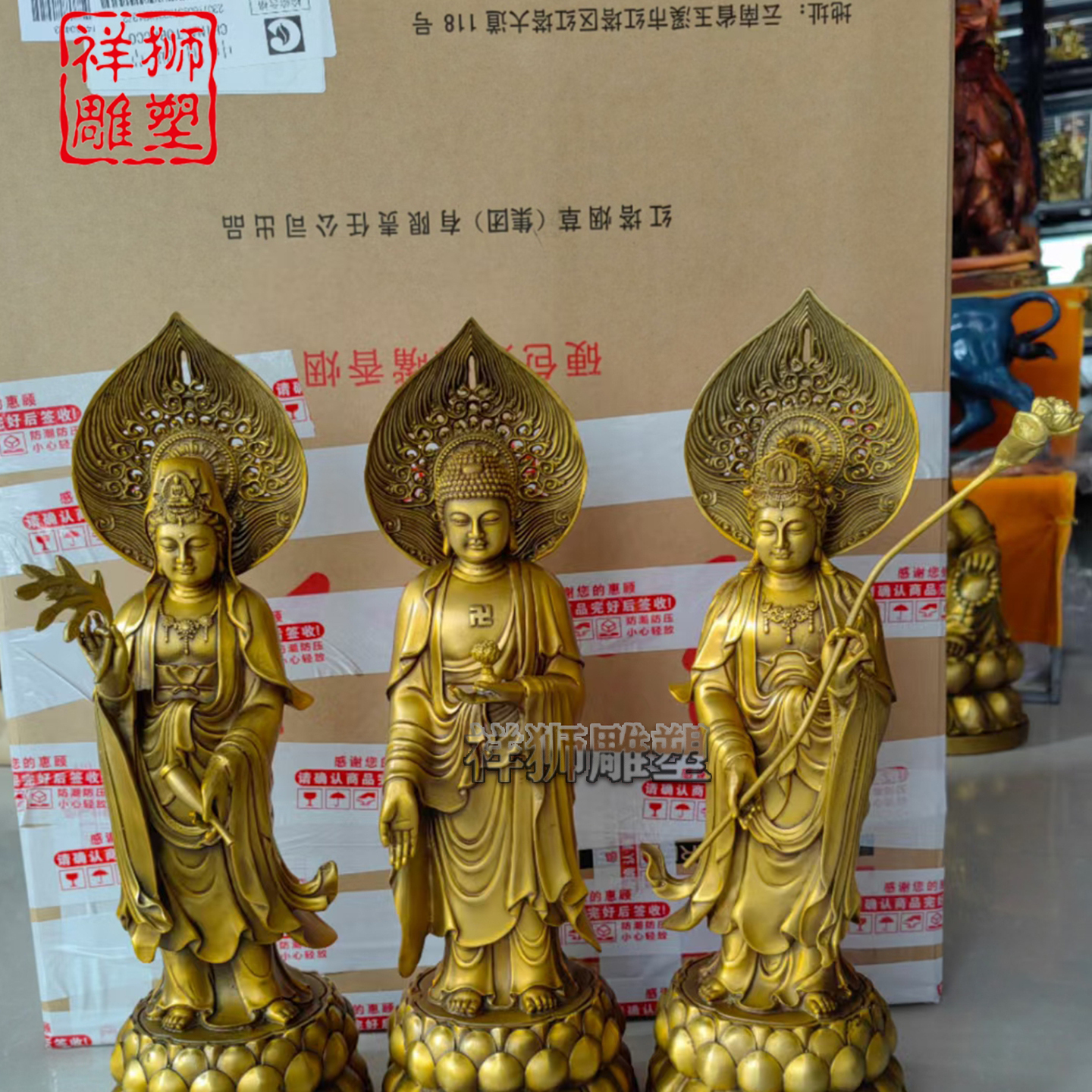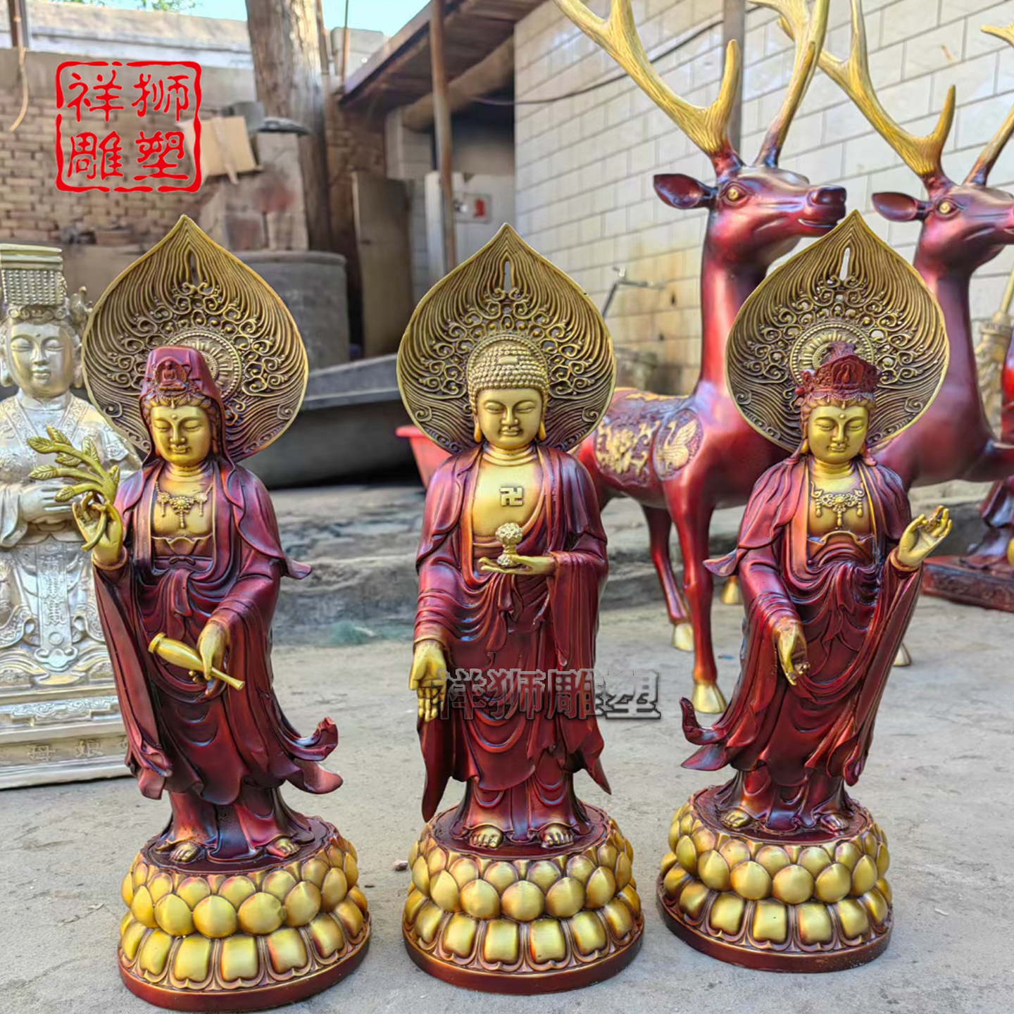 祥狮雕塑黄铜西方三圣佛像阿弥陀佛大势至供应菩萨摆件站像定制