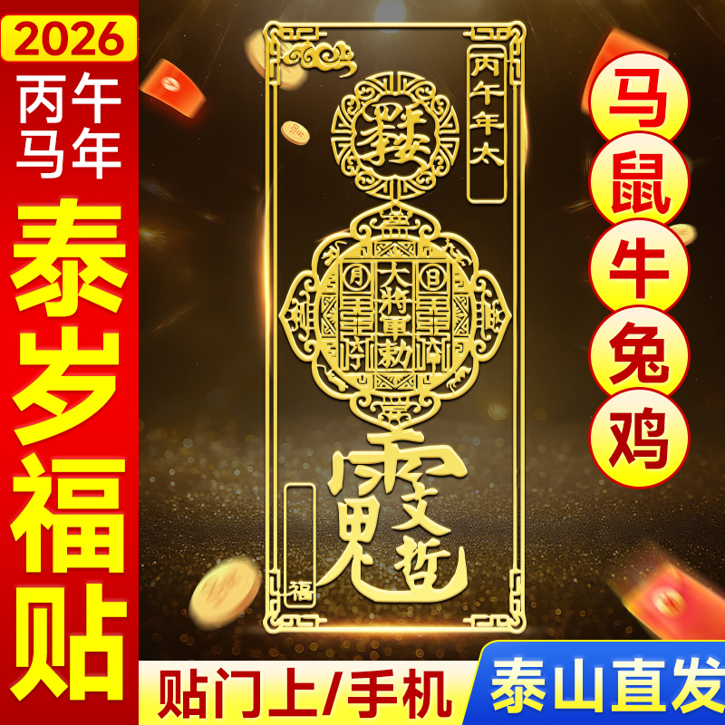 2026年属马鼠牛兔鸡本命年手机贴纸太岁文哲将军吉祥物平安金属贴