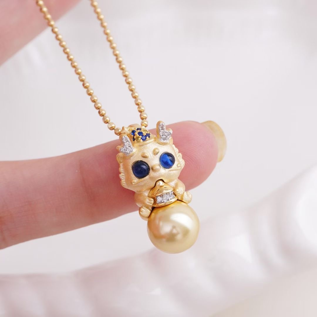 s925纯银银饰吊坠配件珍珠饰品diy手工制作卡通龙项链坠子空托