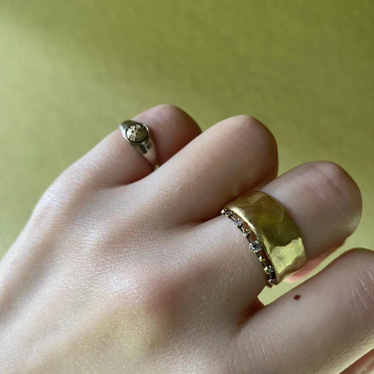 22年秋冬新包税包邮日本代购noguchi棕色钻石镶嵌复古印章尾戒女