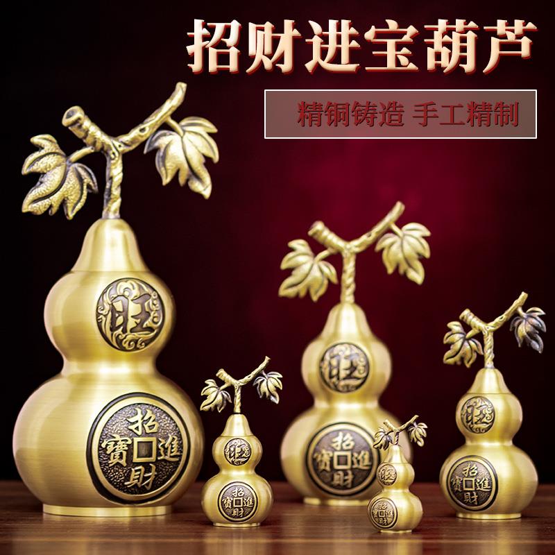 铜葫芦摆件八卦开 口空心家居卧室挂件黄铜可开 盖招财进宝镇宅葫