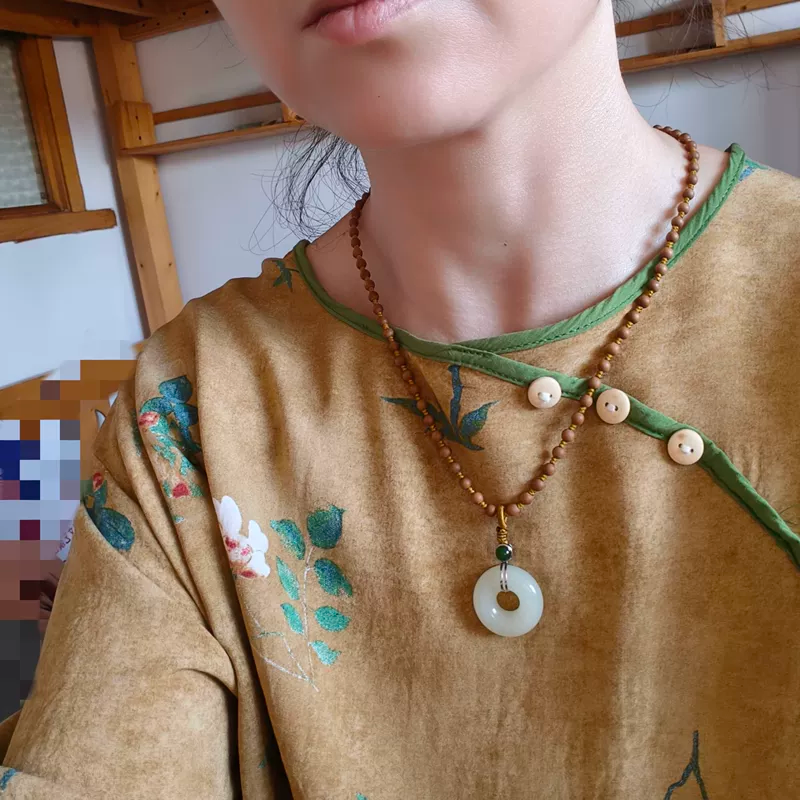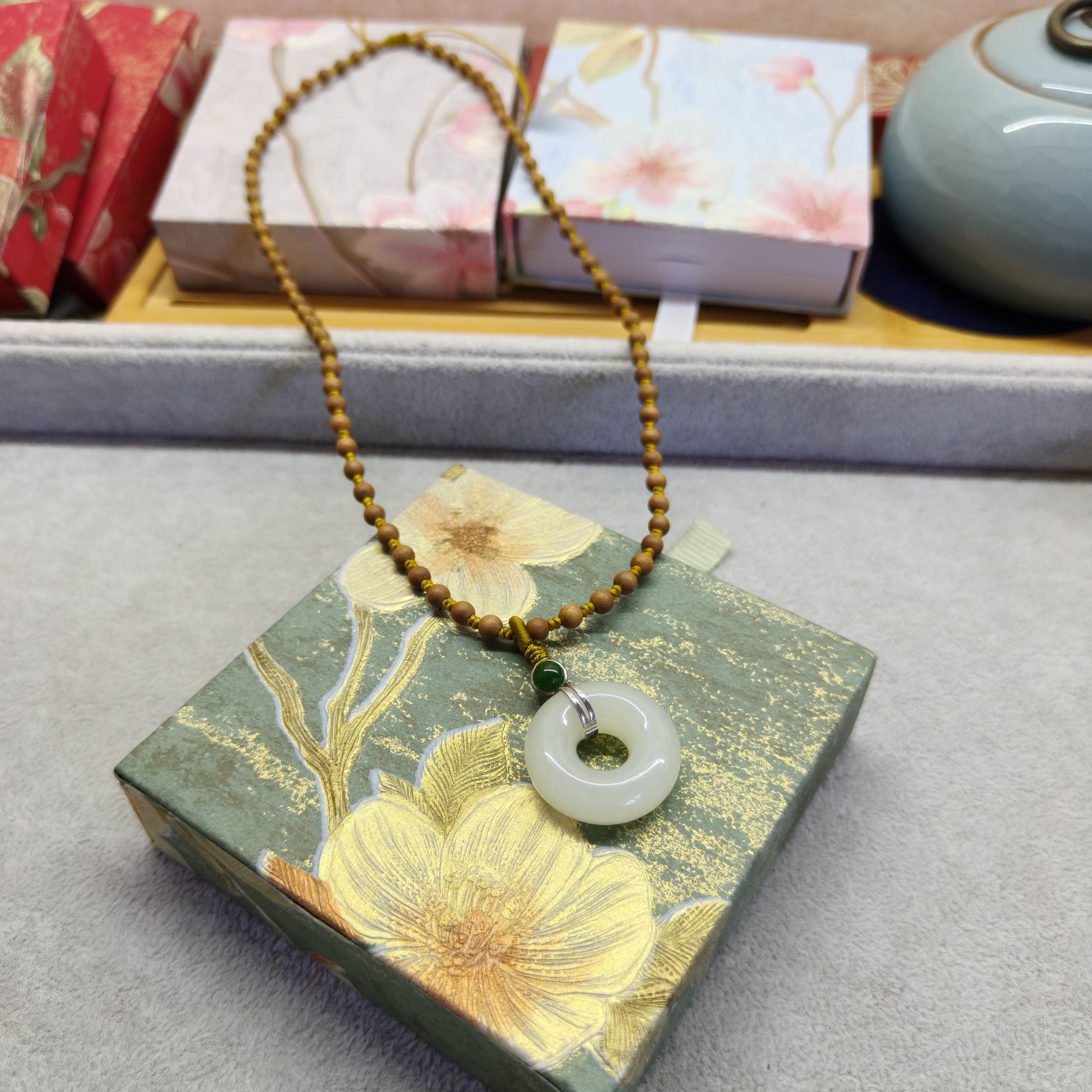 天然印度老山檀香木平安扣吊坠项链女毛衣链简约素雅气质高级感