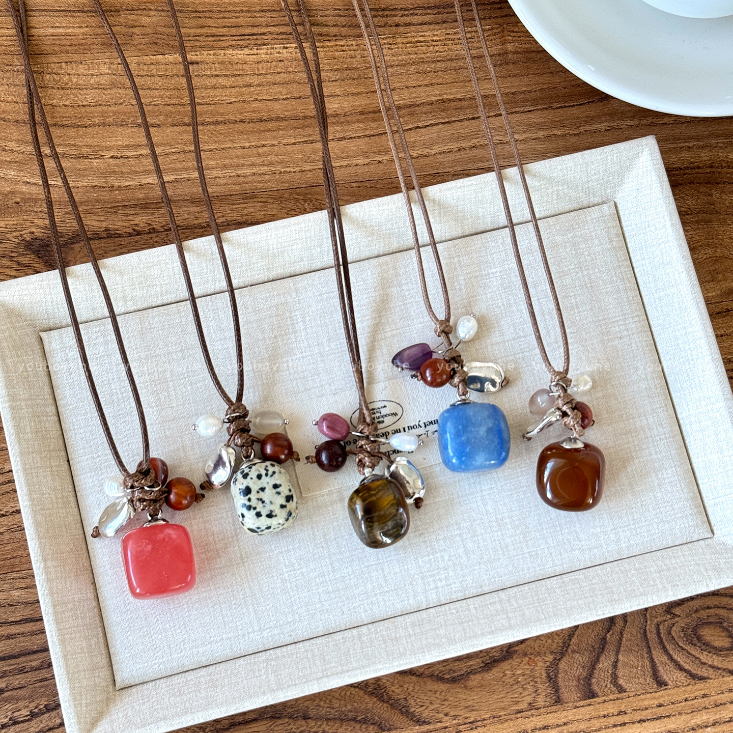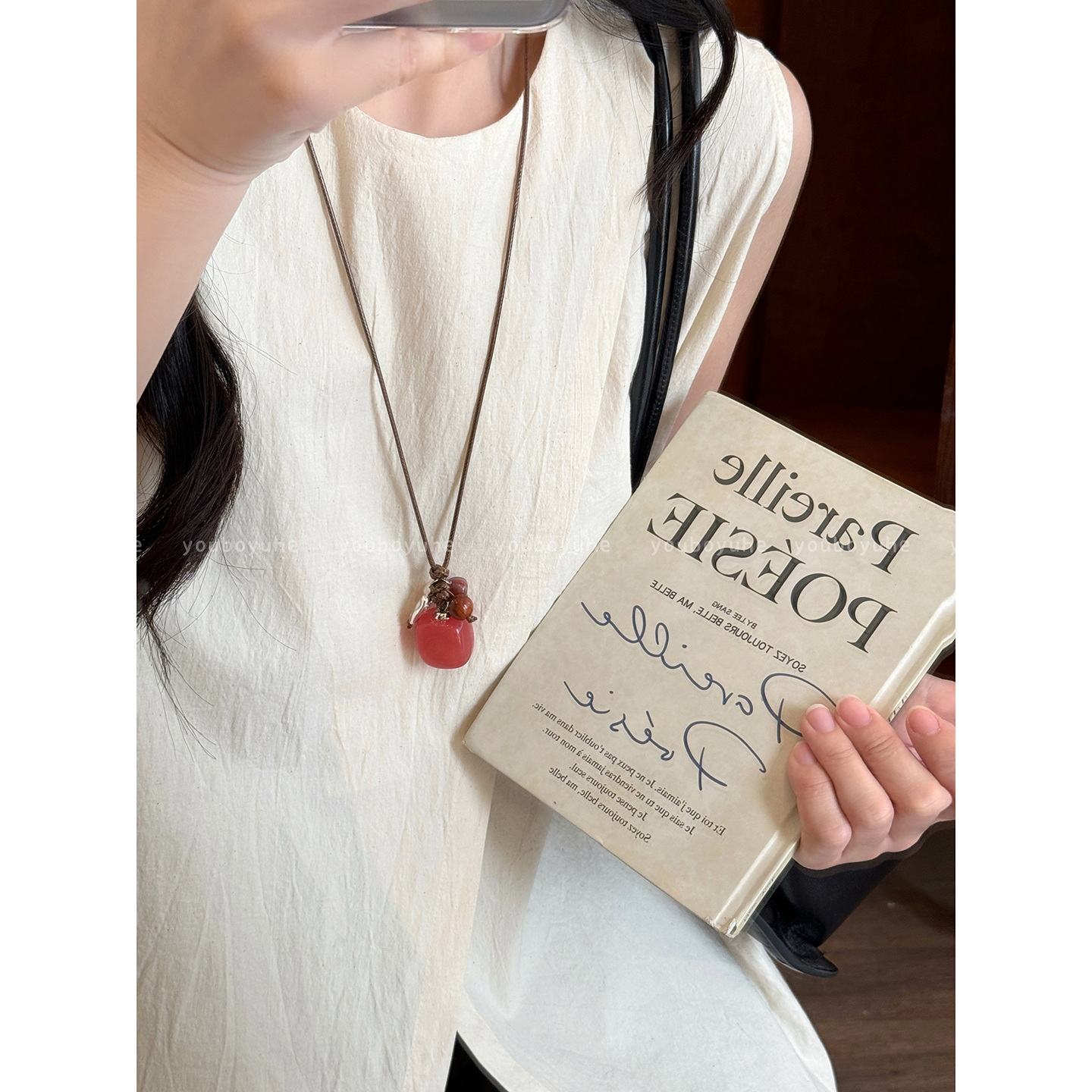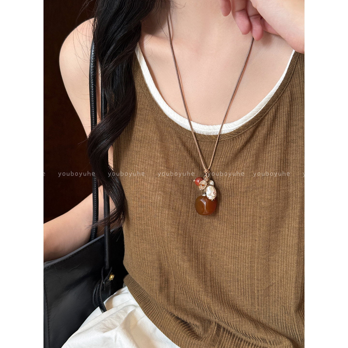 复古虎眼石串珠吊坠项链女轻奢小众高级感毛衣链新款装饰挂脖配饰