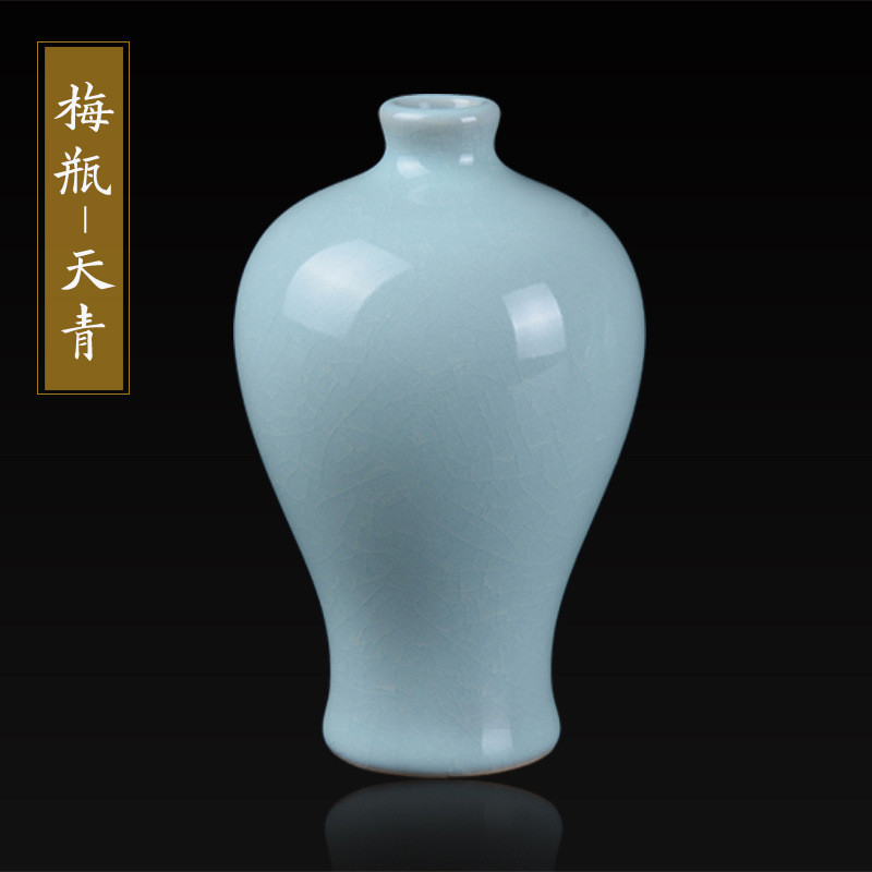 陶瓷小花瓶汝窑仿古中式简约瓷器瓷瓶客厅餐桌插花办公室桌面摆件