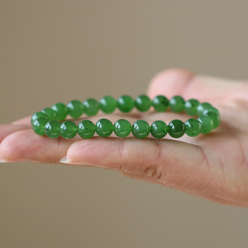 天然和田玉碧玉手串俄罗斯浅阳绿单圈玉石手链女款正品文玩配饰