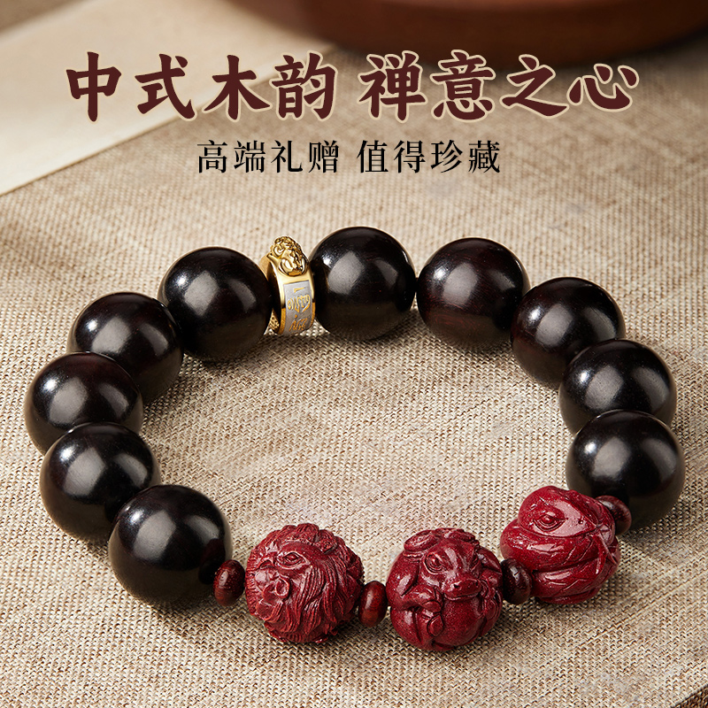 小叶紫檀手串男女文玩朱砂三合生肖手链佛珠檀香木质佛珠盘玩真品