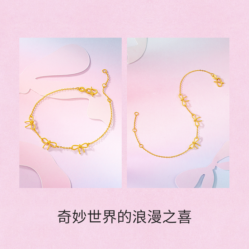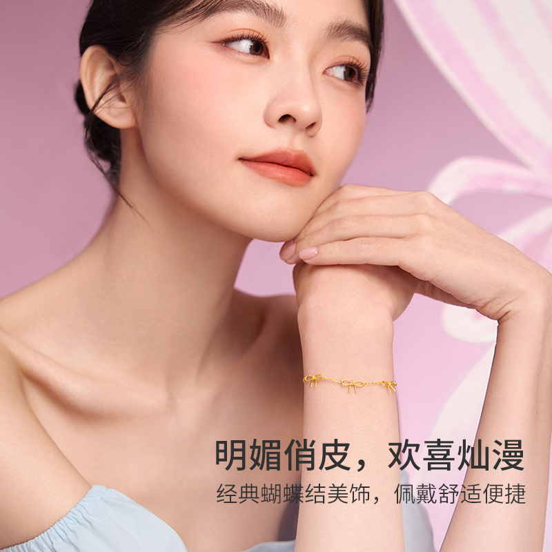 周六福黄金项链计价5G足金首饰小小蝴蝶结手链少女心事节日礼物
