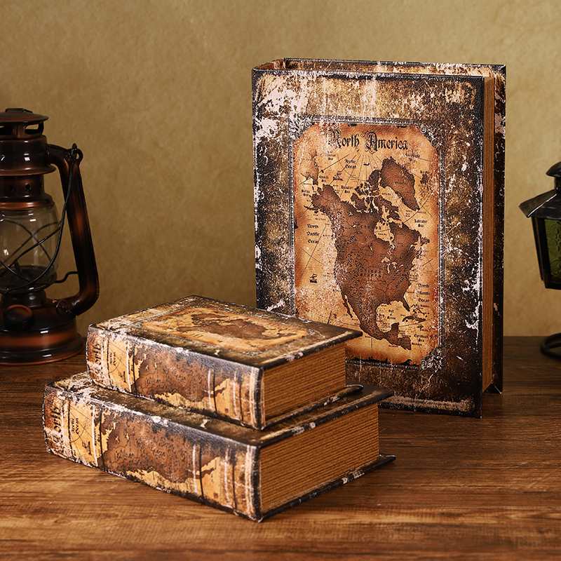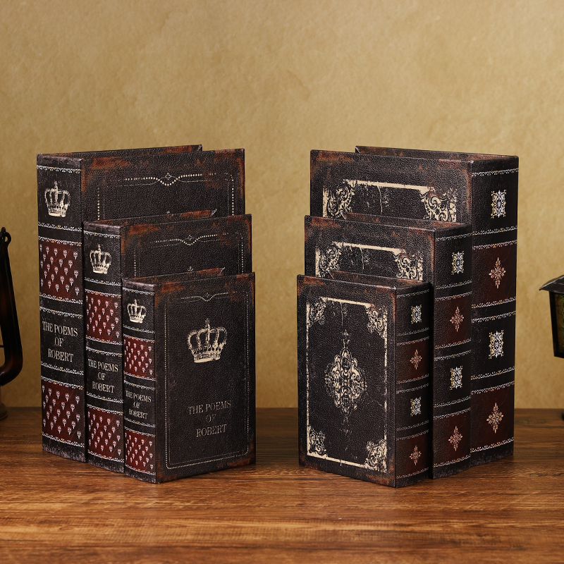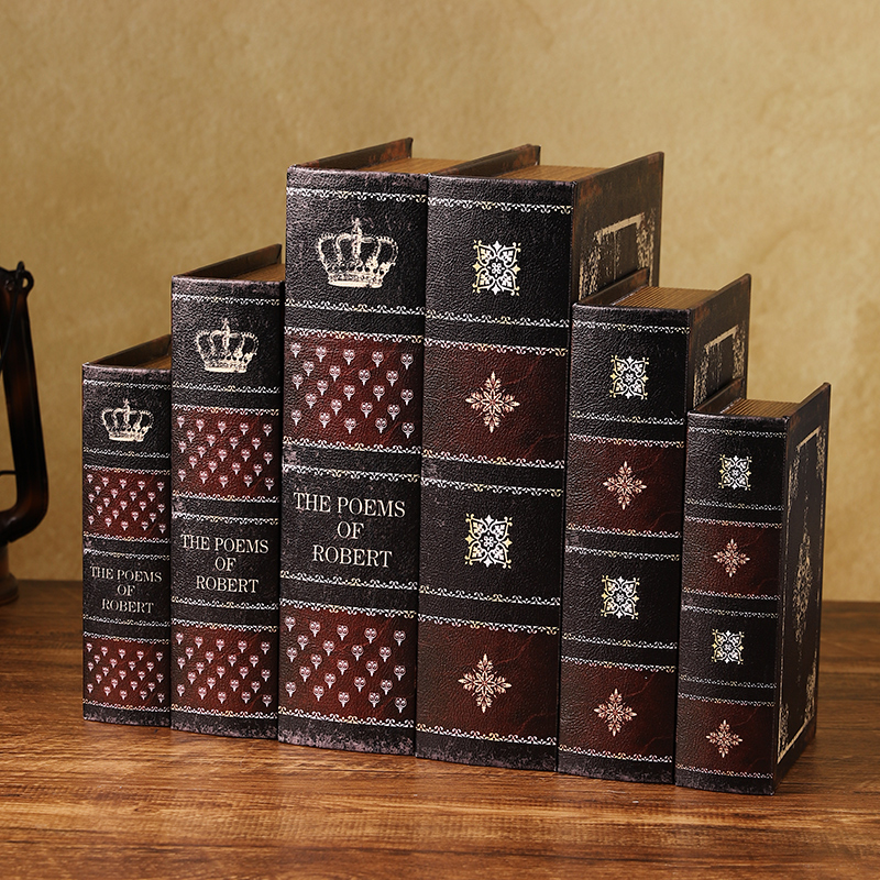 中古假书书柜摆件复古皮革仿真书创意魔法书收纳盒商用装饰餐具盒