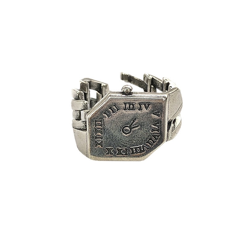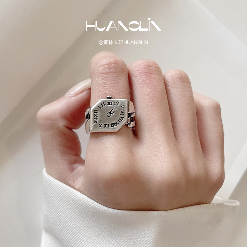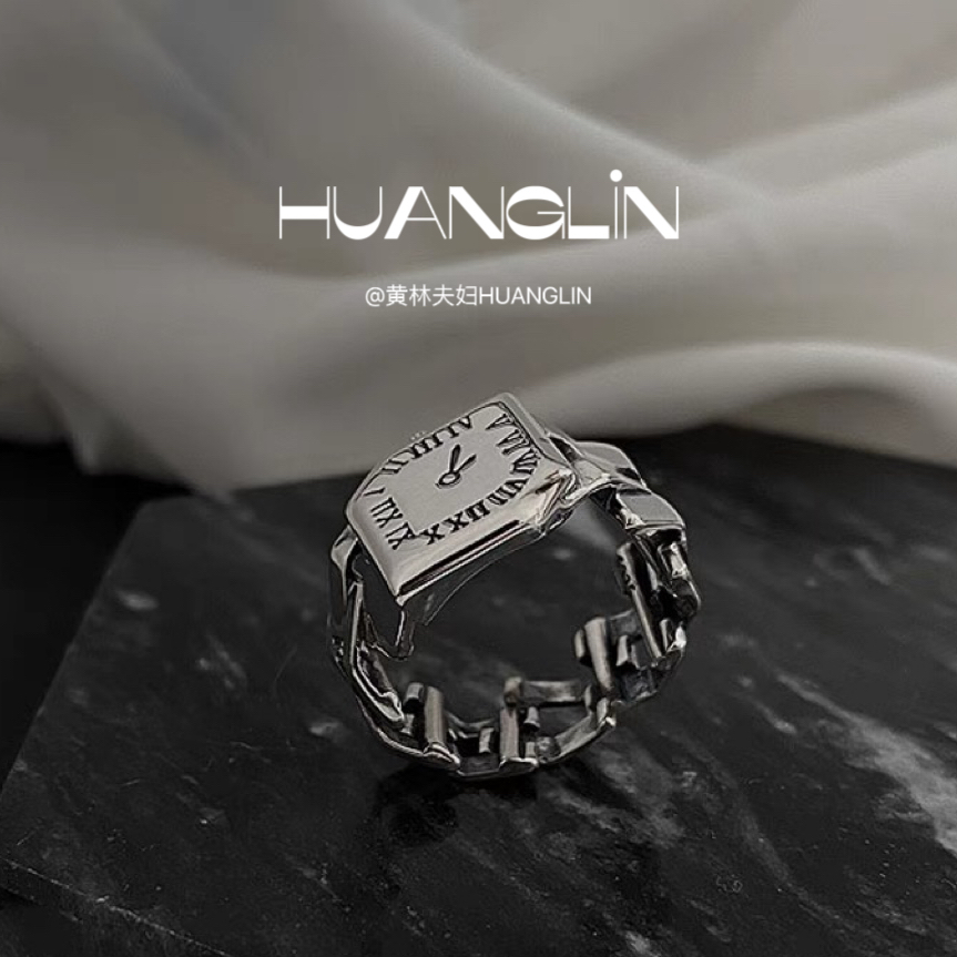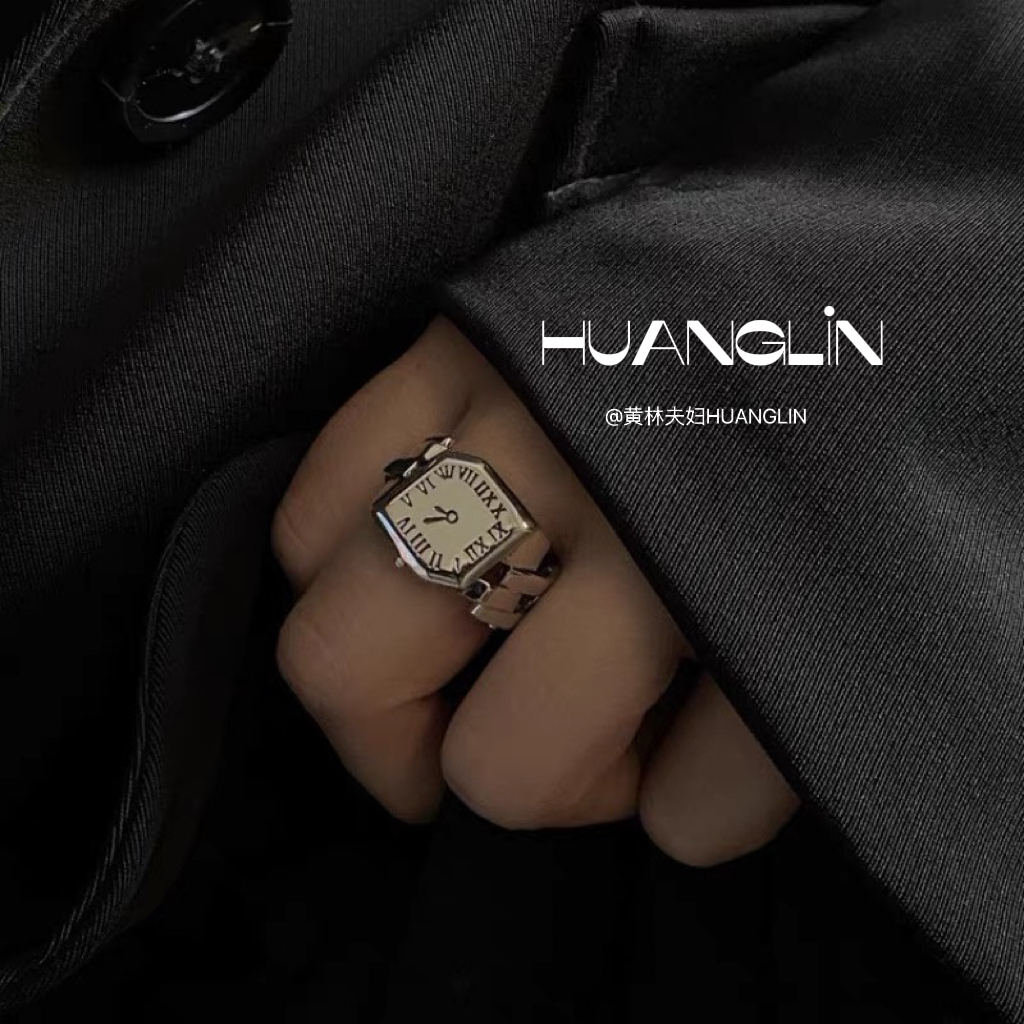 HUANGLIN 钟表罗马数字复古戒指女ins嘻哈可开口调节食指戒指环男