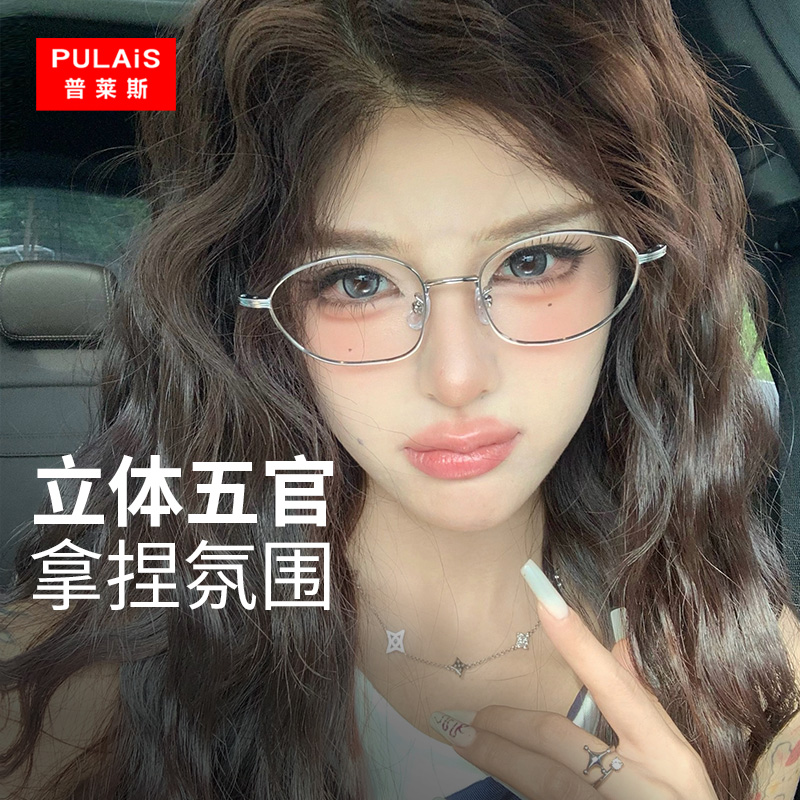 普莱斯眼镜近视女度数可配专业配镜超轻钛架小银框椭圆防蓝光辐射