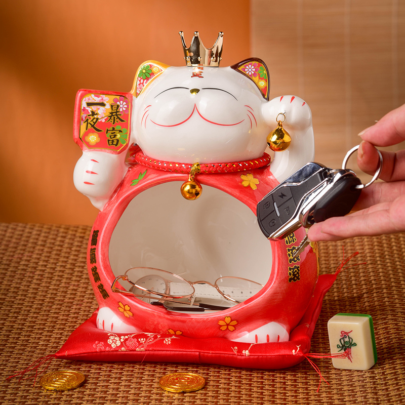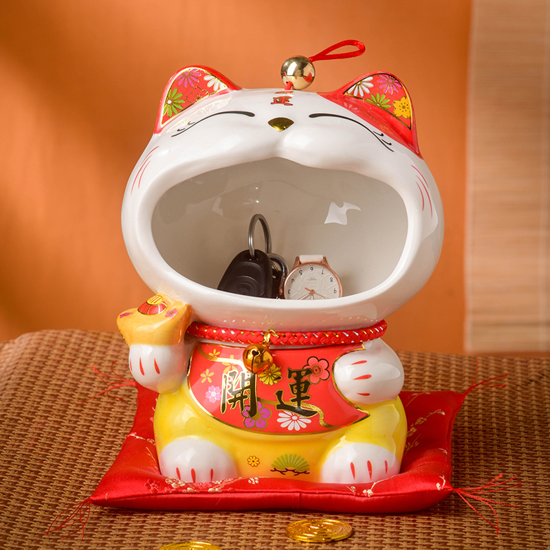 创意大招财猫钥匙摆放台收纳摆件前台玄关装饰品门厅门口开业礼品