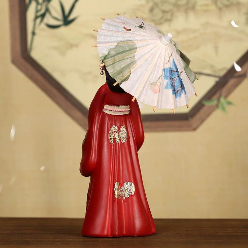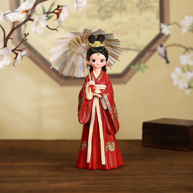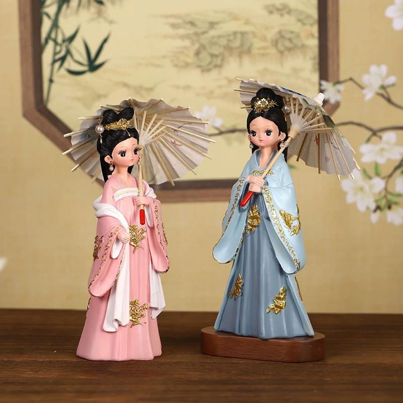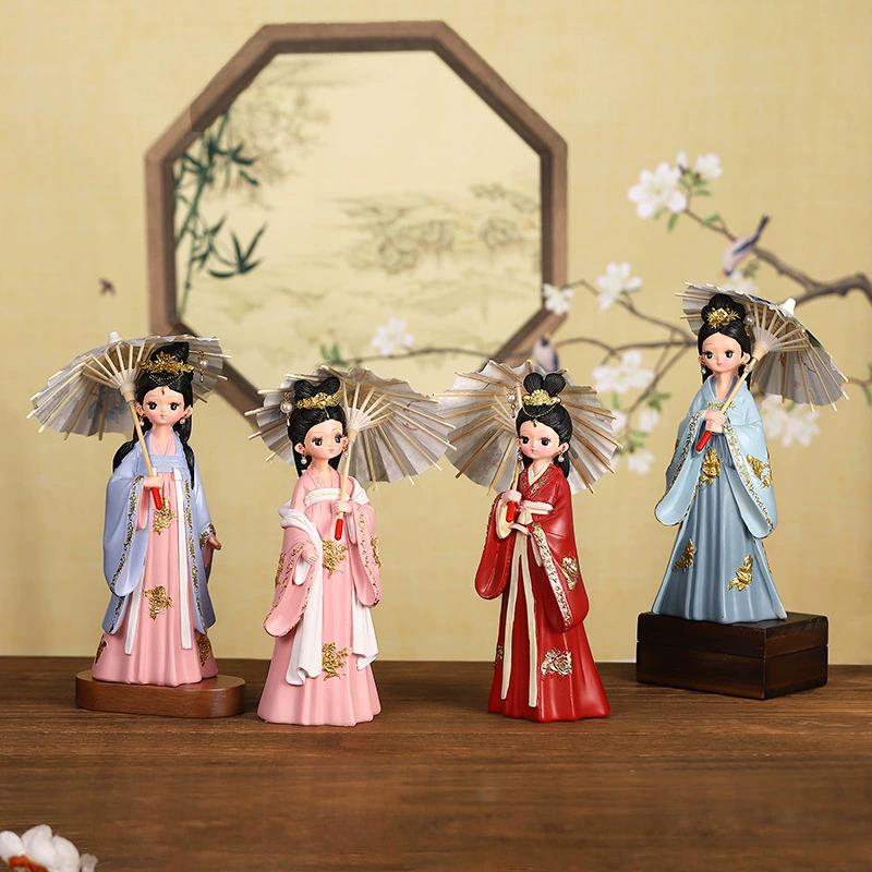 国潮古代风汉服撑伞女孩手办公仔酒柜玄关客餐厅服装店装饰品摆件