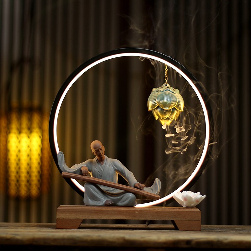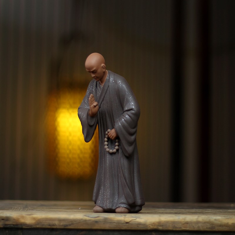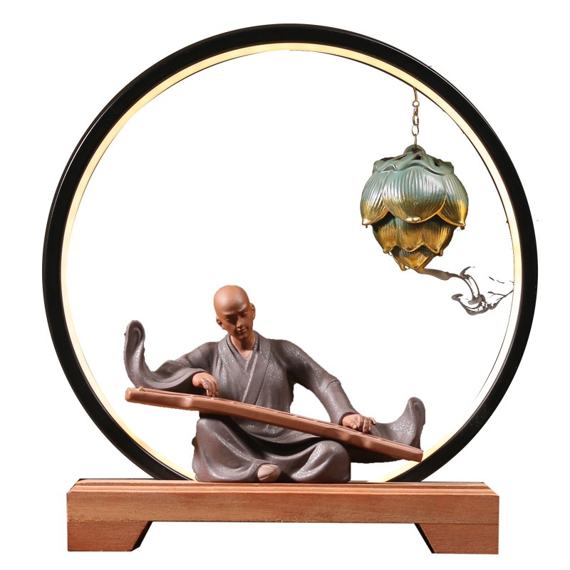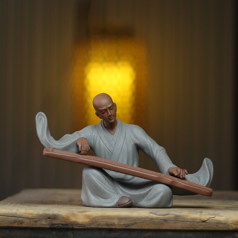 紫砂摆件禅意人物工艺礼品摆饰抚琴和尚玄关博古架装S饰品家居覆