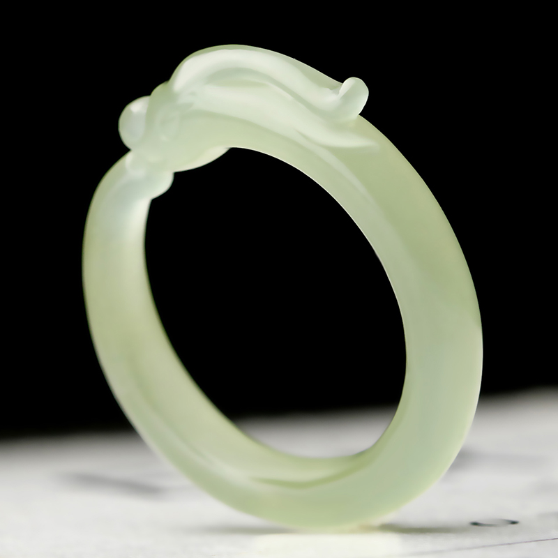 念玉新疆和田玉指环天然青白玉戒指翠青海玉石男女款尾戒子玉猪龙