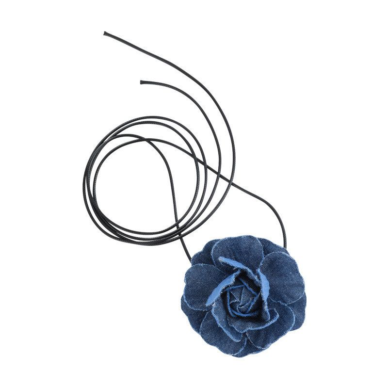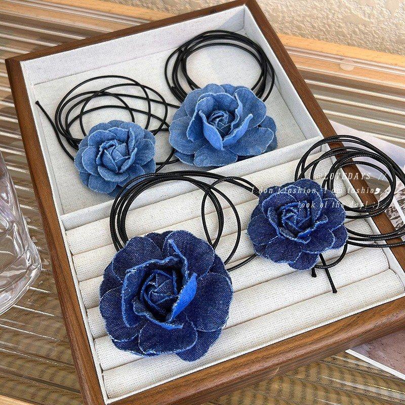 蓝色牛仔山茶花颈链choker芭蕾风甜酷少女夏季甜酷绑带颈带锁骨链