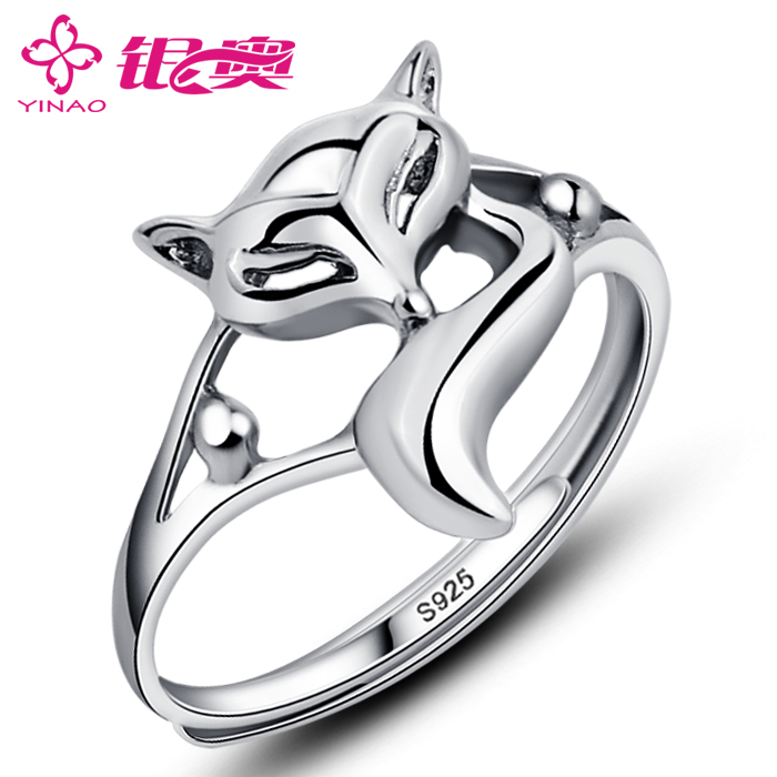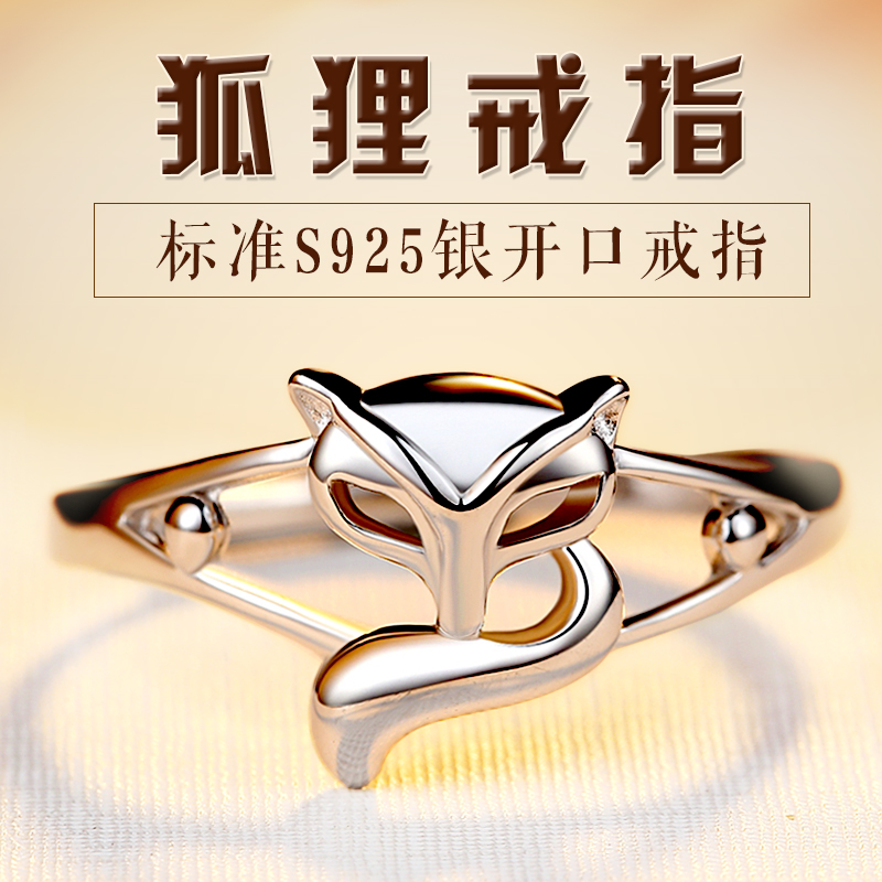 925纯银小狐狸戒指女士招桃花转运 个性开口食指潮人单身中指指环