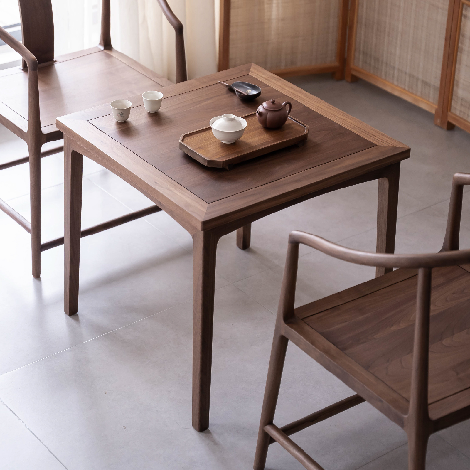 九间房新中式四方桌黑胡桃木实木茶书桌棋牌餐厅阳台小户型八仙桌