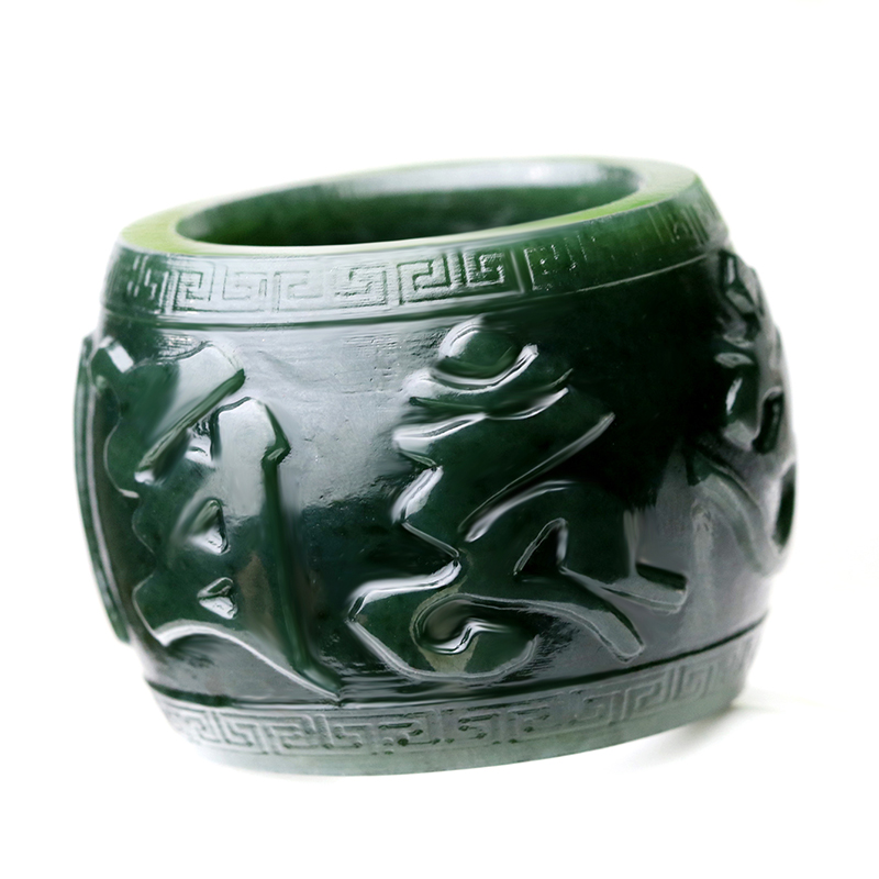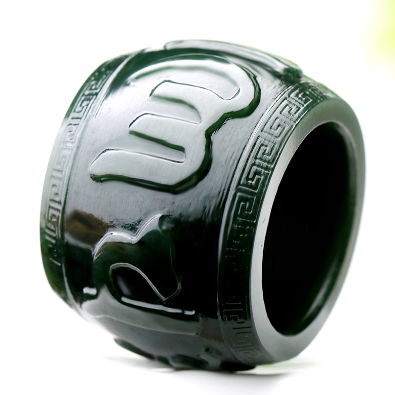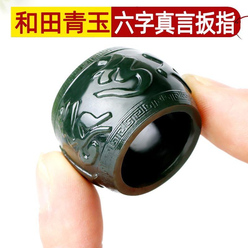 念玉新疆和田玉扳指环天然黑青玉板戒指男款玉石六字真言手把玩件