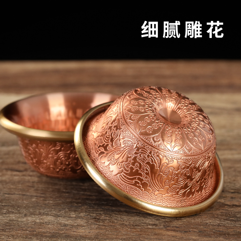 速发紫铜莲花锤纹供水杯家用供奉七供水财神供音圣水杯净水供碗八