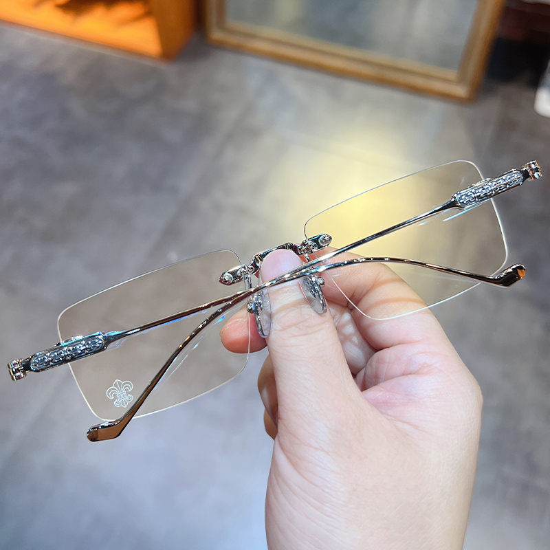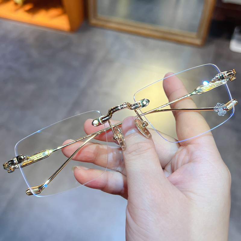 简丹萝心潮百搭新品近视镜框男女复古个性无框打孔护目防蓝光镜架