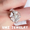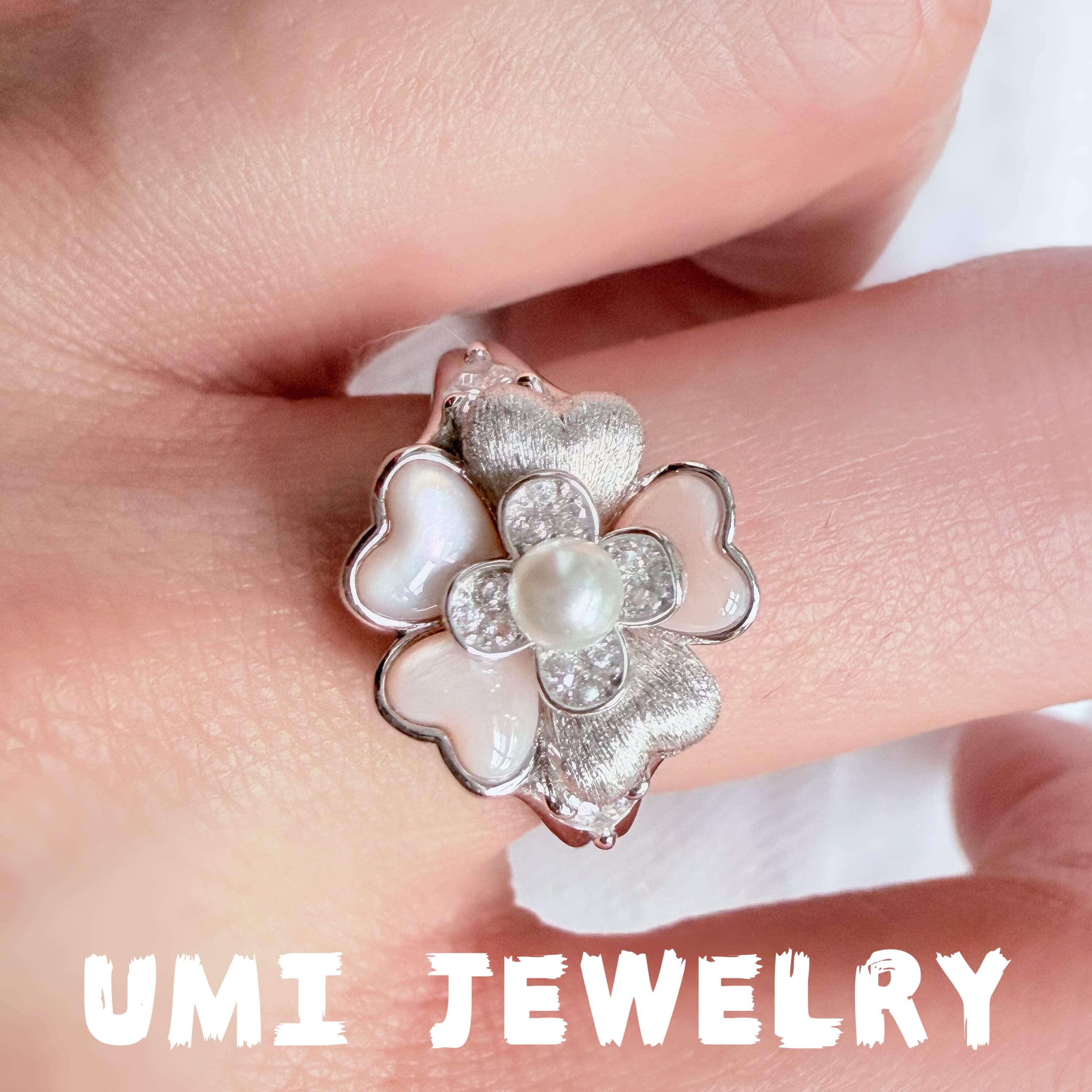 UMI家【粉黛】/S925银镀k金·天然粉母贝立体花拉丝珍珠戒指小众