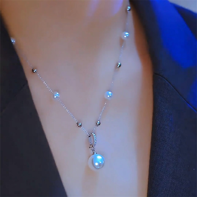 法式微镶满天星珍珠吊坠项链女2025新款爆款高级感轻奢气质锁骨链