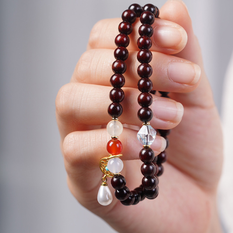 印度小叶紫檀手串0.6双圈DIY吊坠水滴 女款文玩饰品首饰手串佛珠