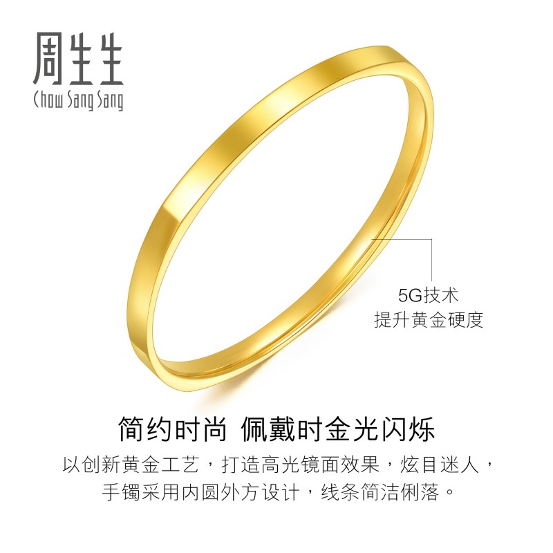 周生生珠宝gin黄金镯子光面素圈5G黄金手镯金饰93721K
