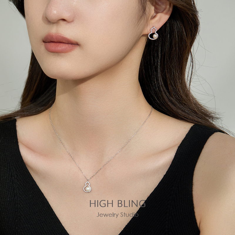 福禄安康S925银天然淡水珍珠葫芦锁骨项链女耳饰蚊香盘耳夹无耳洞