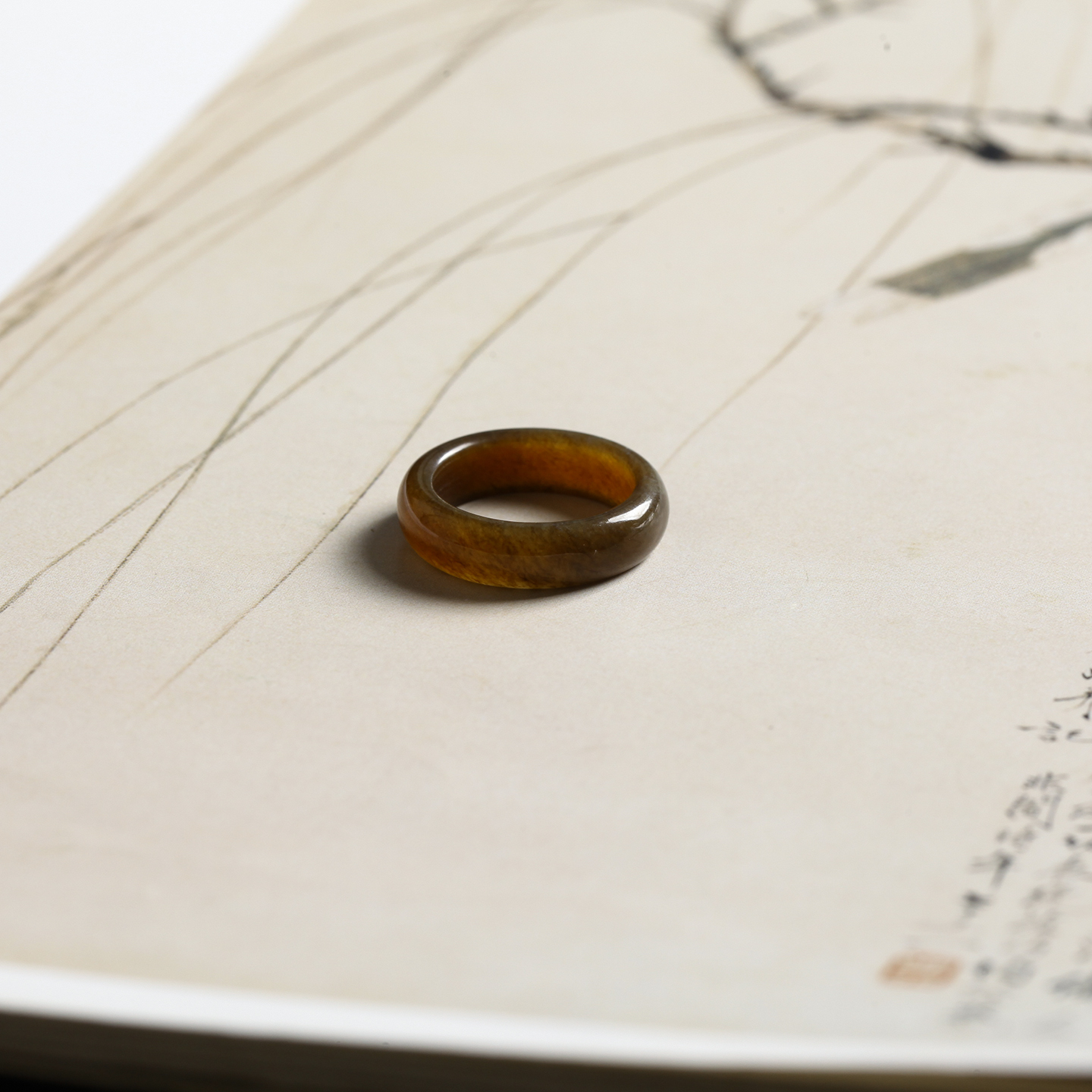 12号戒指 新疆和田玉糖料糖玉唐草纹圆弧素圈指环 7726